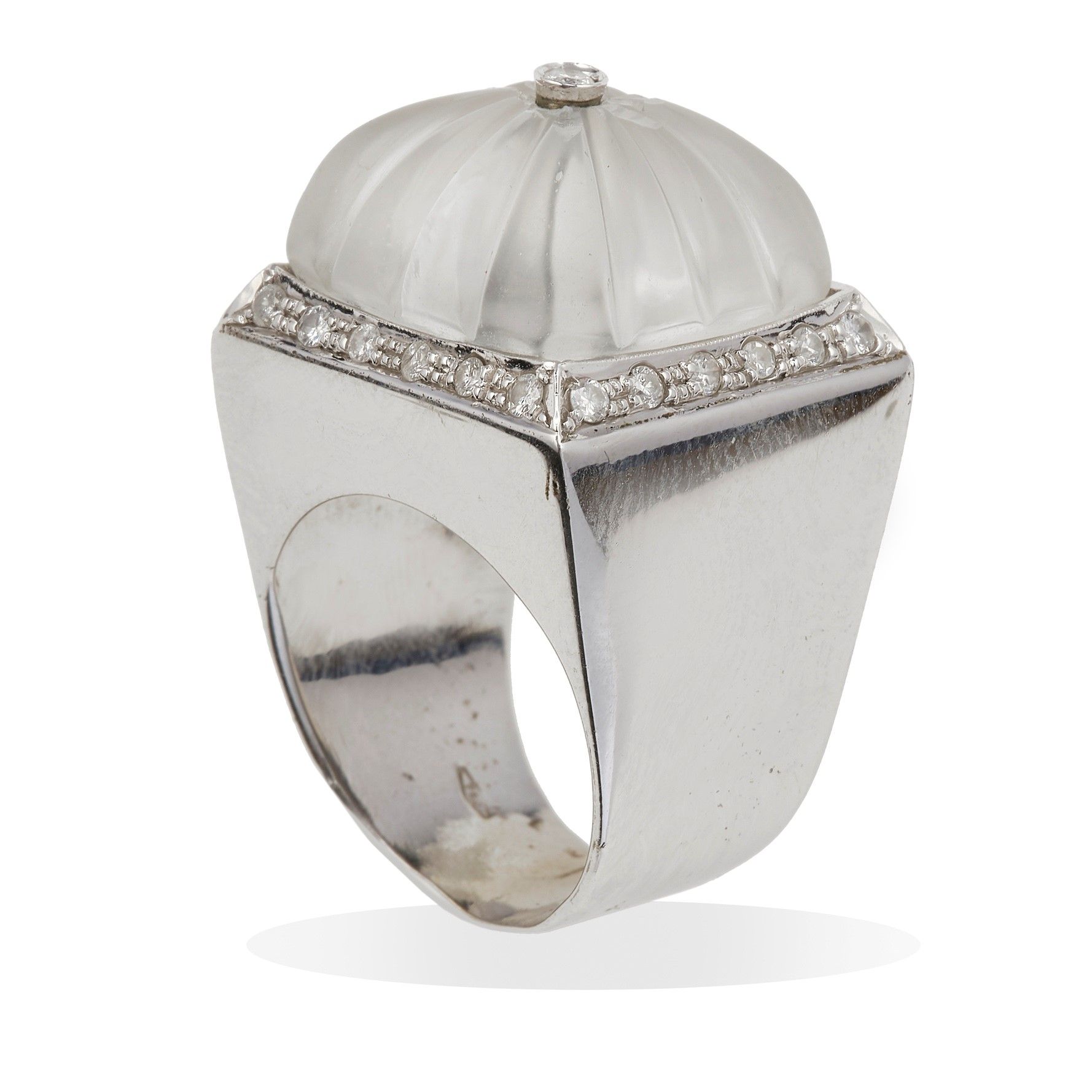 Anello con diamanti e cristallo di rocca inciso