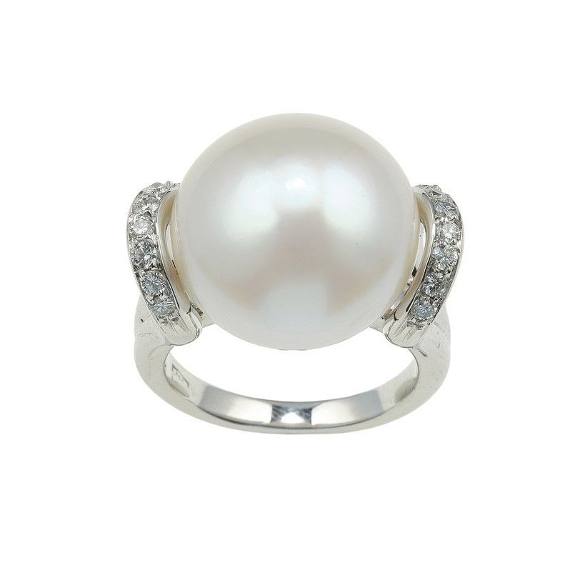 Anello con perla coltivata e diamanti