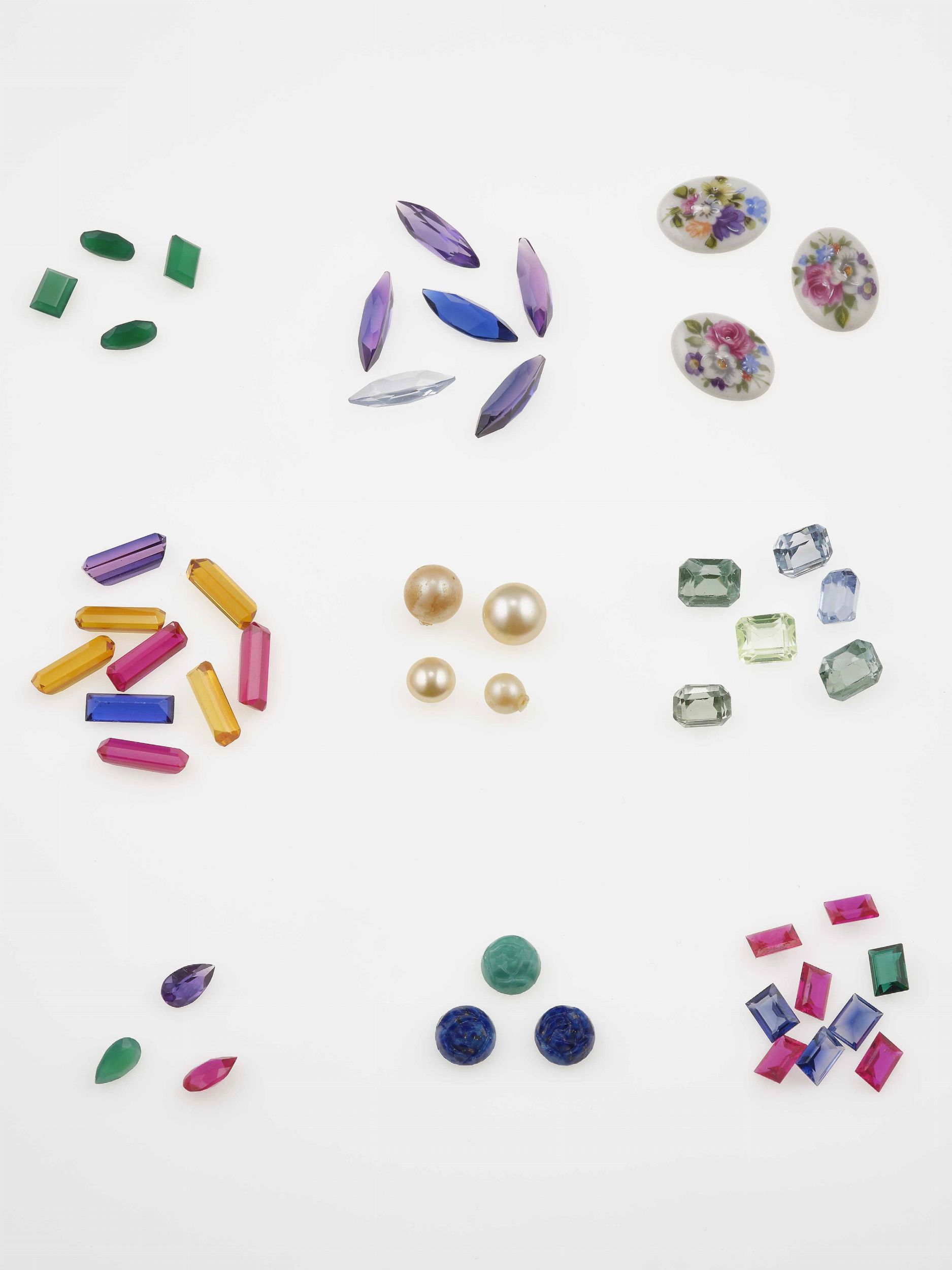 Grande lotto composto da gemme sintetiche tagli sfaccettati e cabochon e quindici [..]