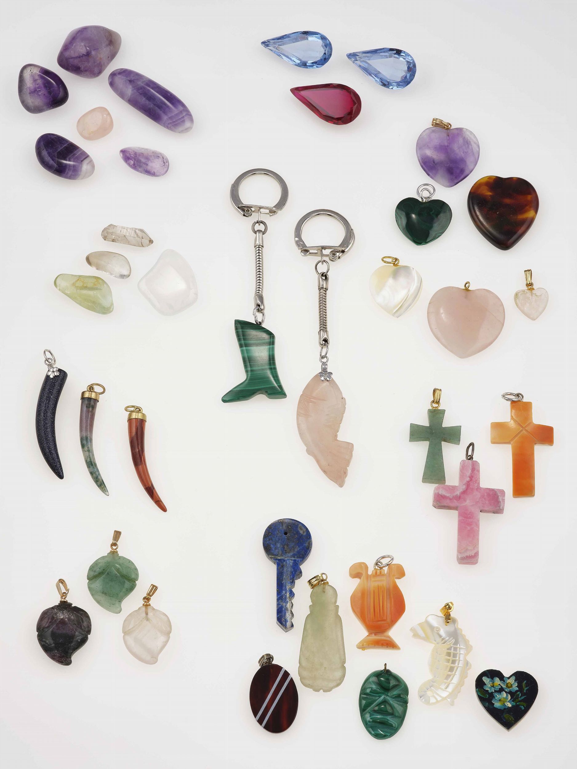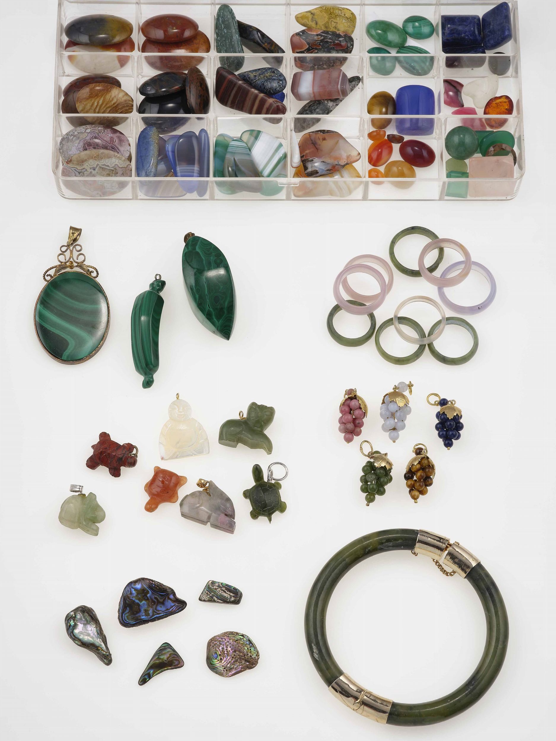 Grande lotto composto da pietre dure materiali vari, gemme sintetiche montate e [..]