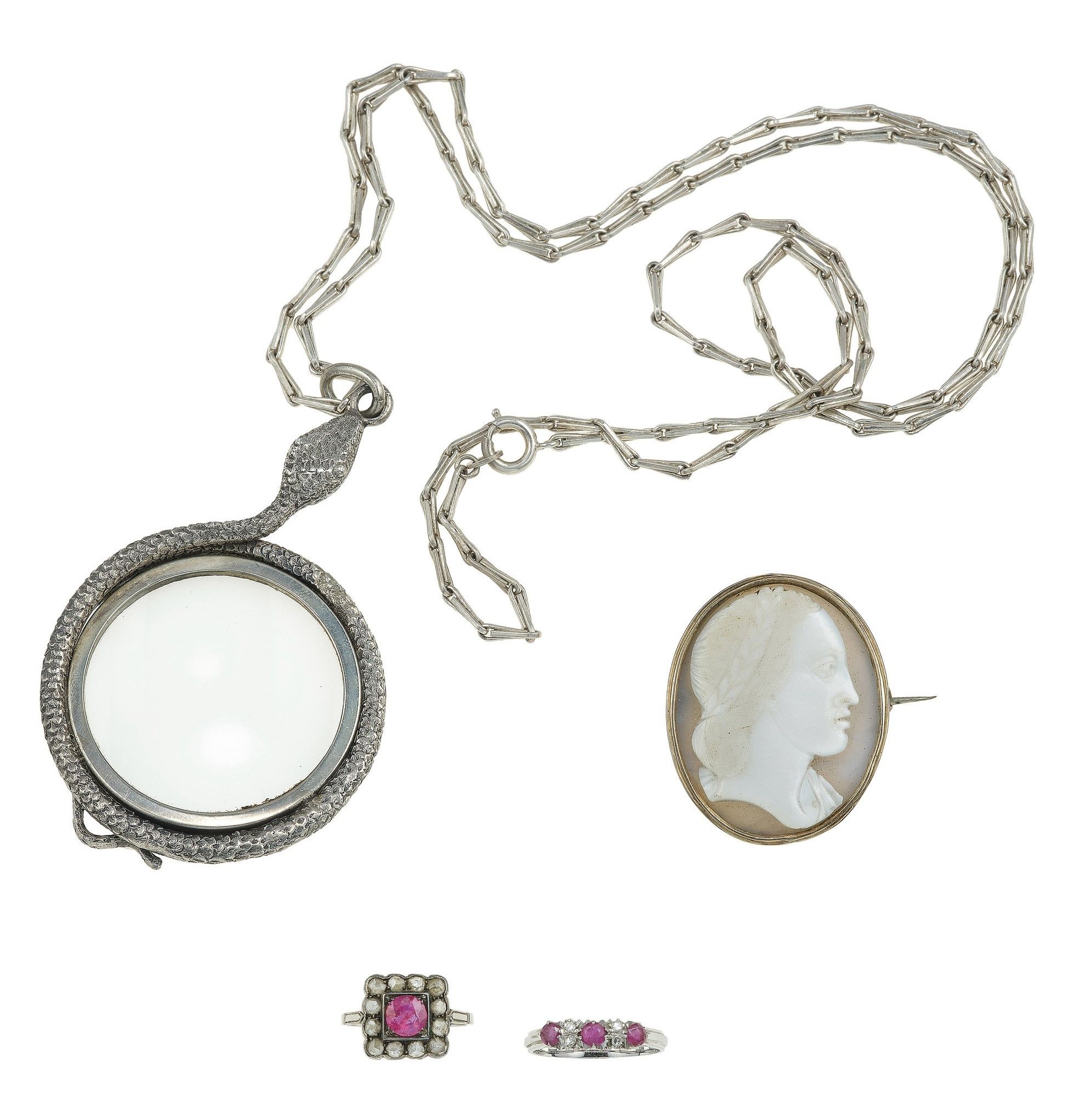 Lotto composto da due anelli con diamanti di vecchio taglio e piccoli rubini, una [..]