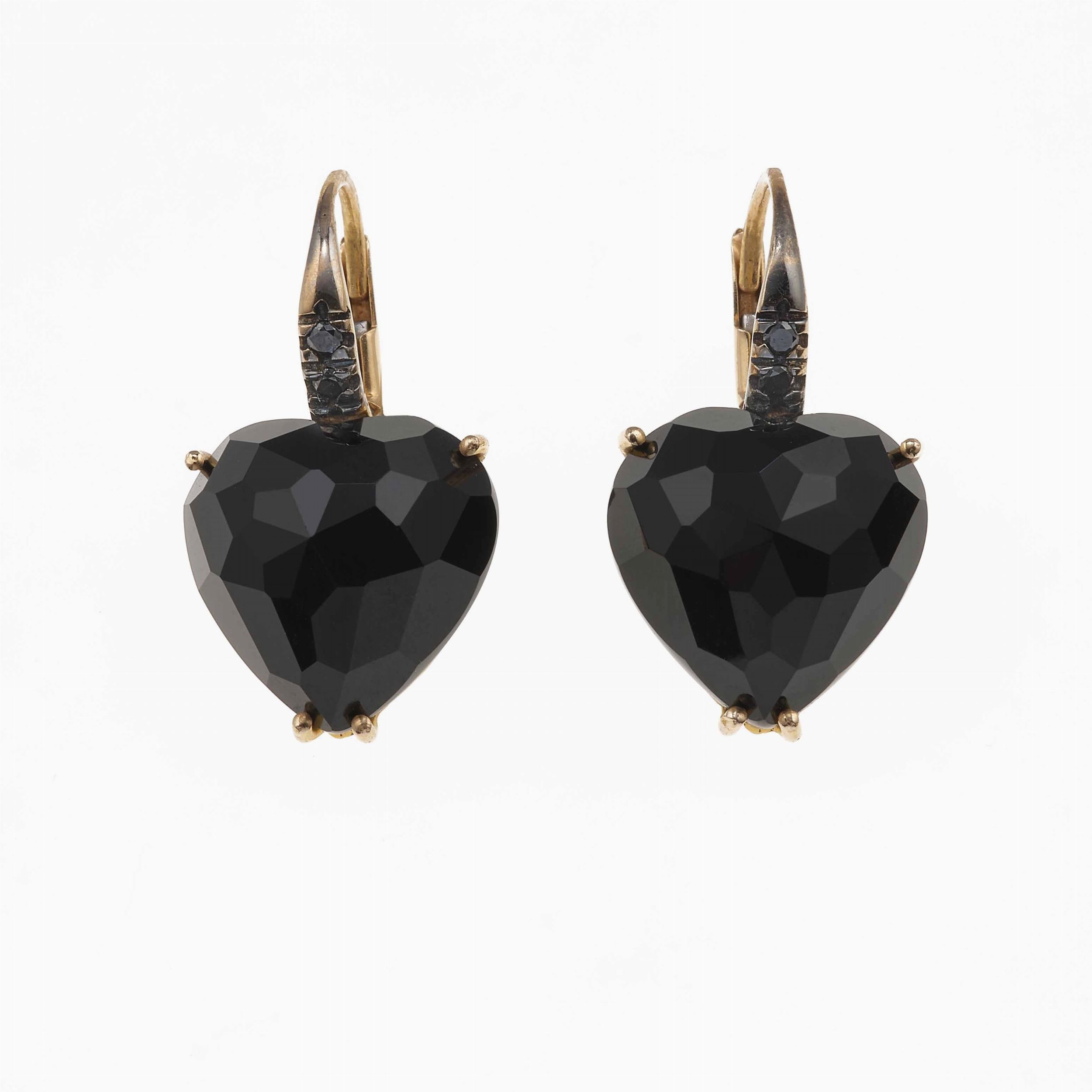 Orecchini cuore con onice e diamanti neri