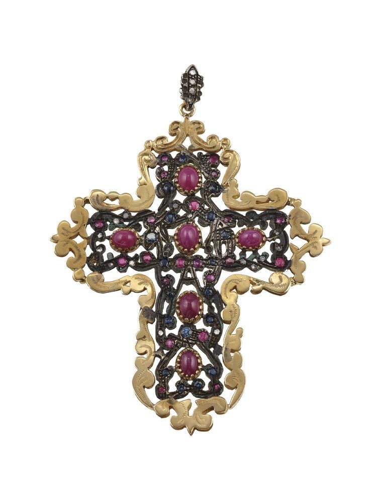Pendente con rubini, zaffiri e piccoli diamanti