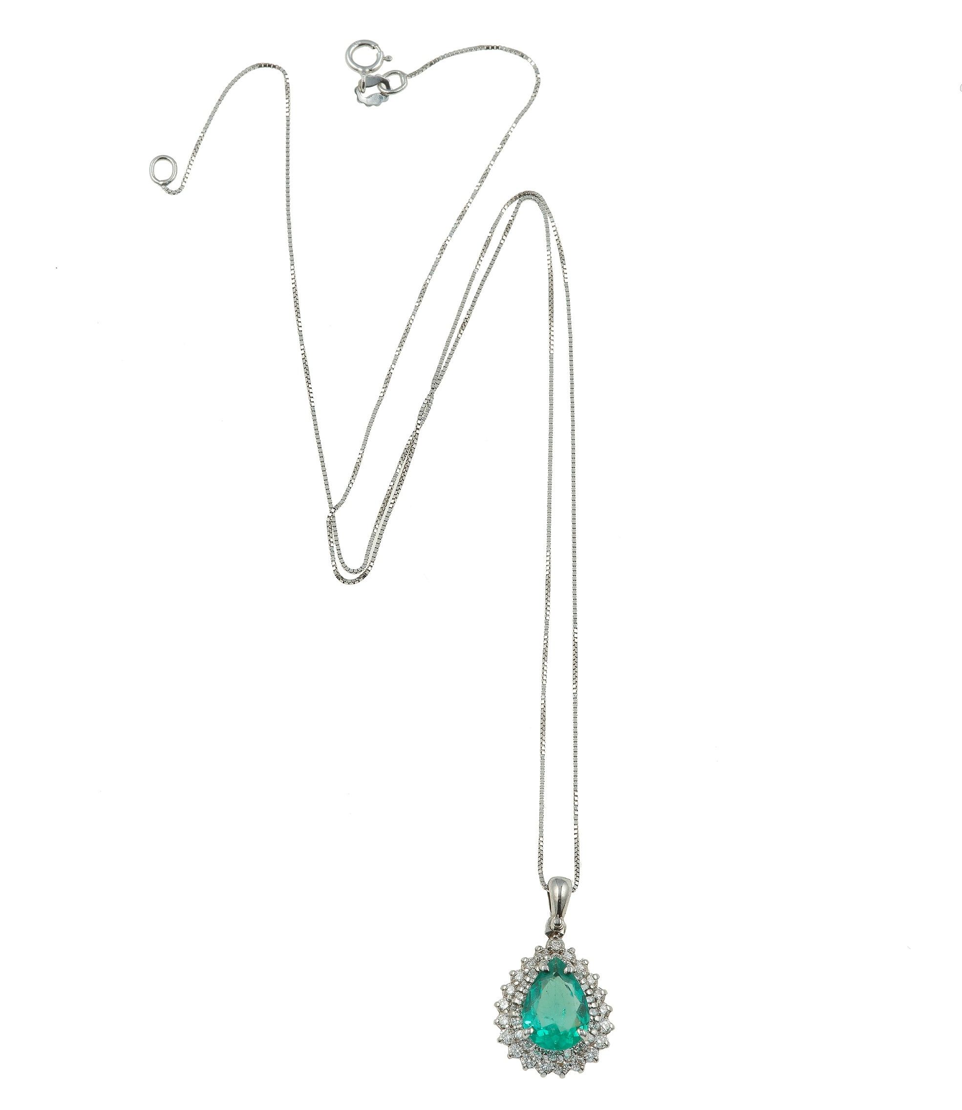 Pendente con smeraldo taglio goccia e diamanti a contorno