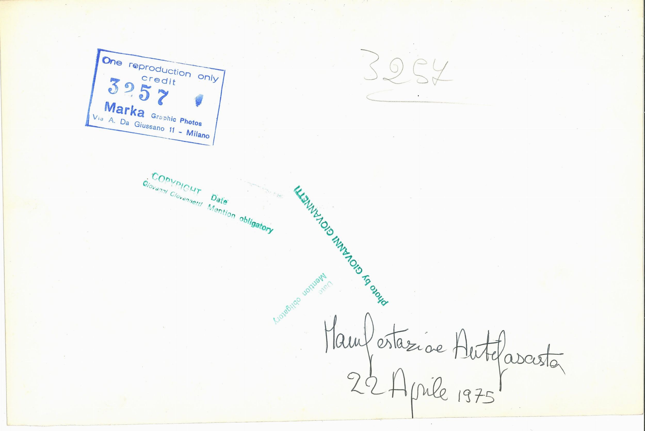 1975 timbri del fotografo al retro timbro Marka al retro annotata a penna al retro