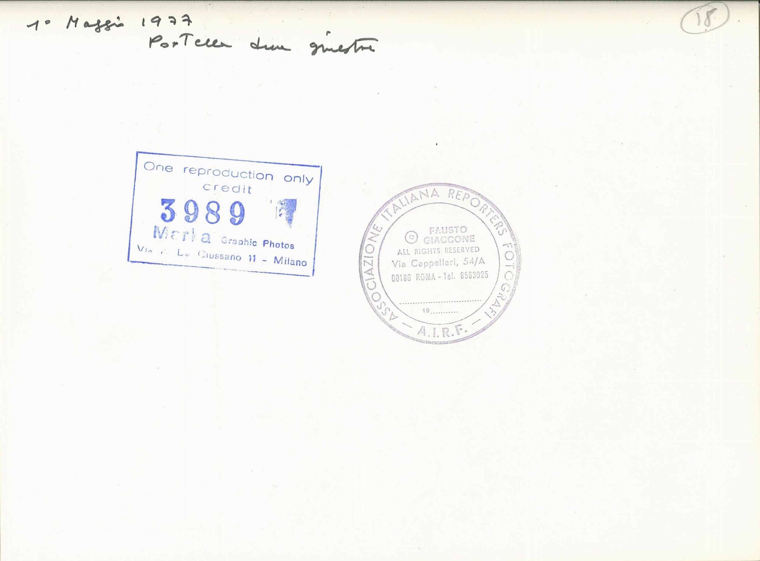 1977 timbro del fotografo al retro timbro Marka al retro annotata a penna al retro