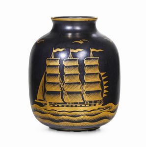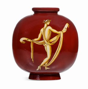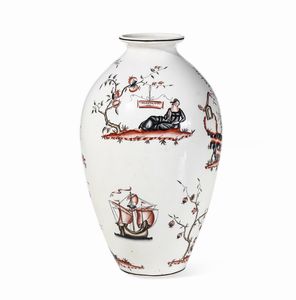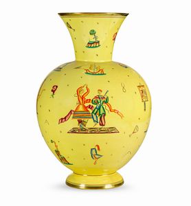 altezza cm 44diametro cm 24 Vaso con coperchio in terraglia a colaggio con decoro di personaggi e festoni filettati [..]