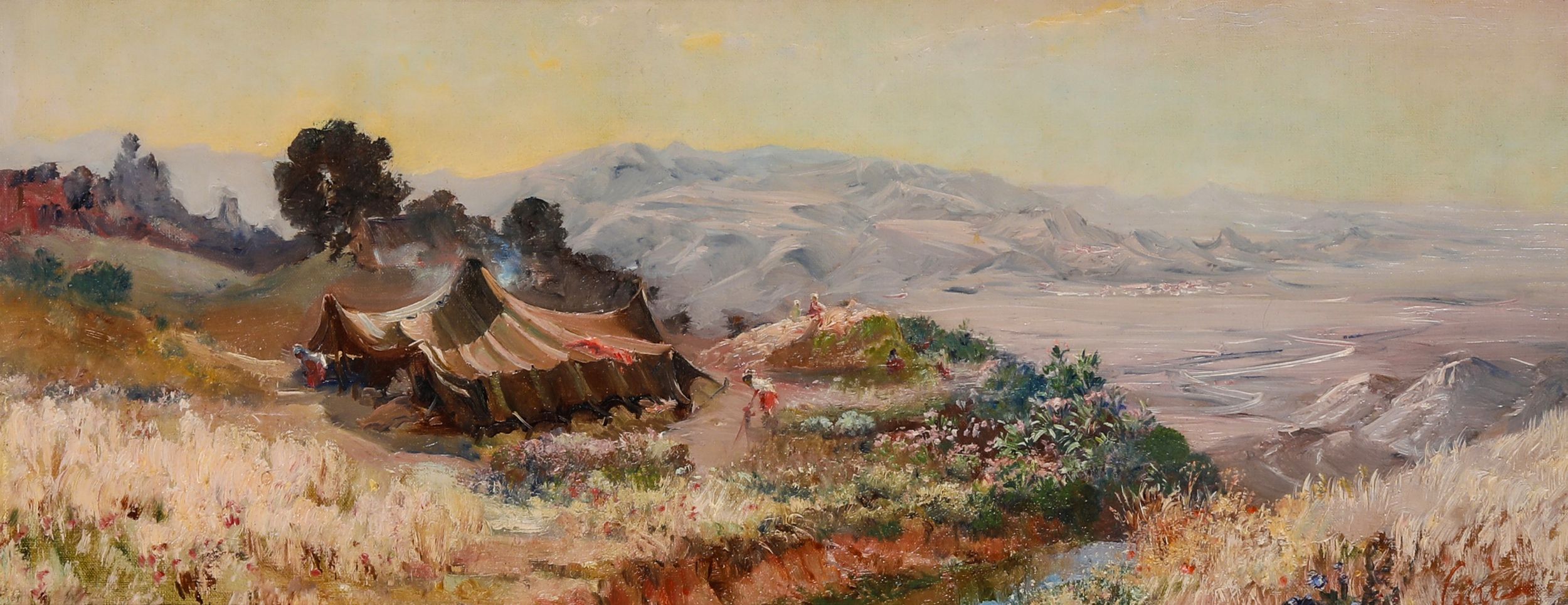 coppia di dipinti ad olio su tela, Largh. 80,4 - Alt. 35 cm