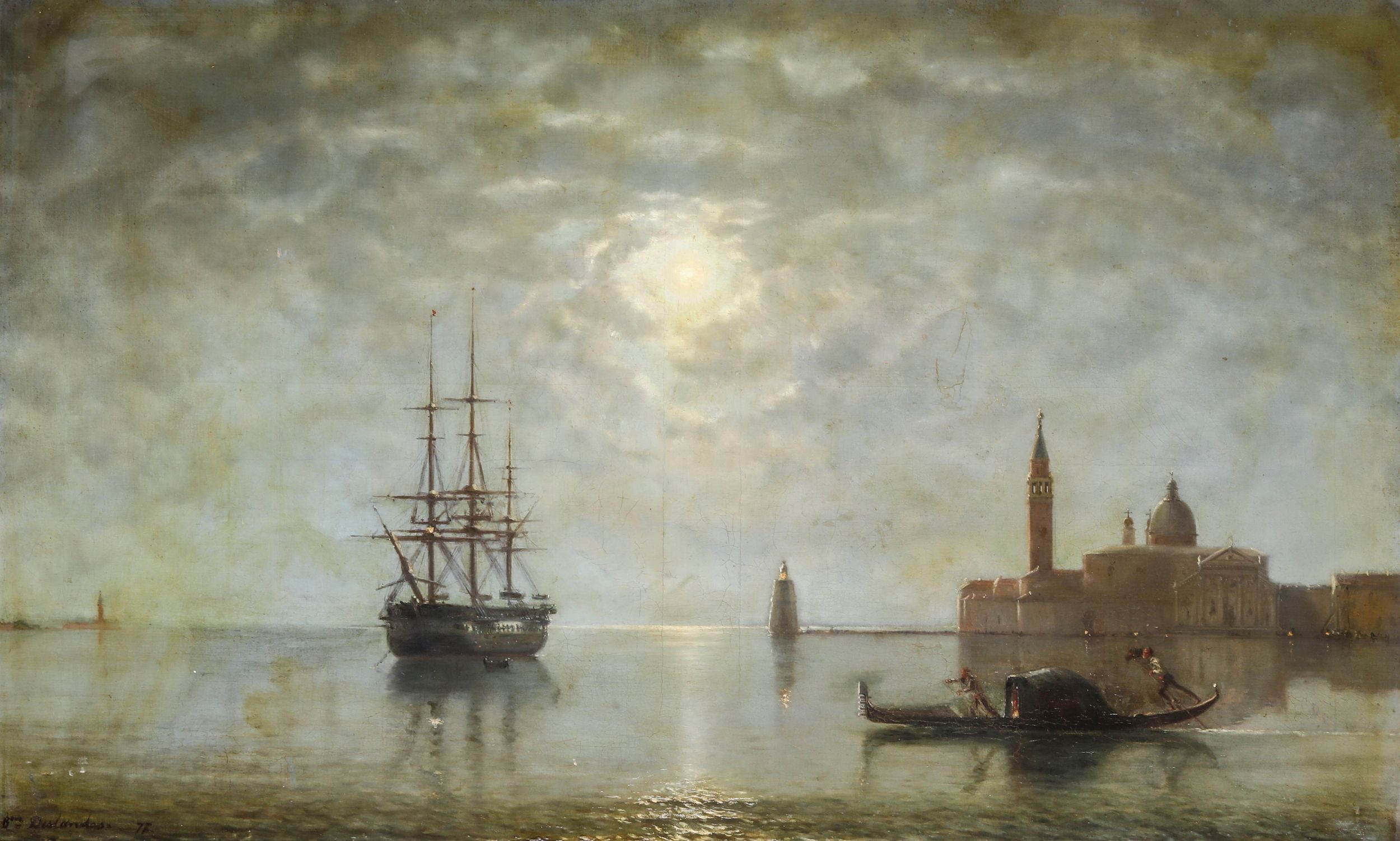 E.A Deslandes (XIX-XX secolo) Veduta di S. Giorgio Maggiore al chiaro di luna