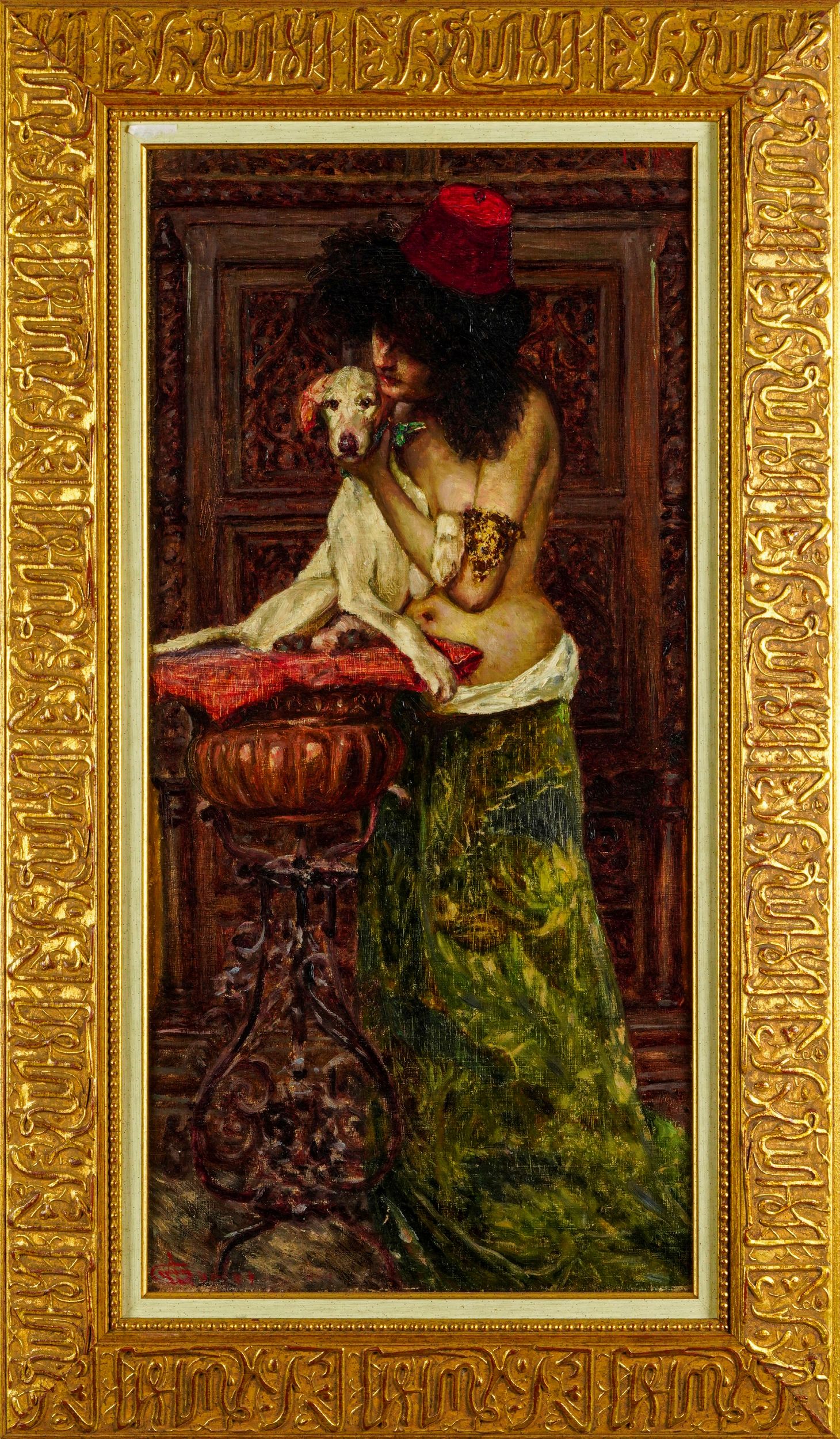 Pittore orientalista degli inizi del XX secolo Odalisca con cane
