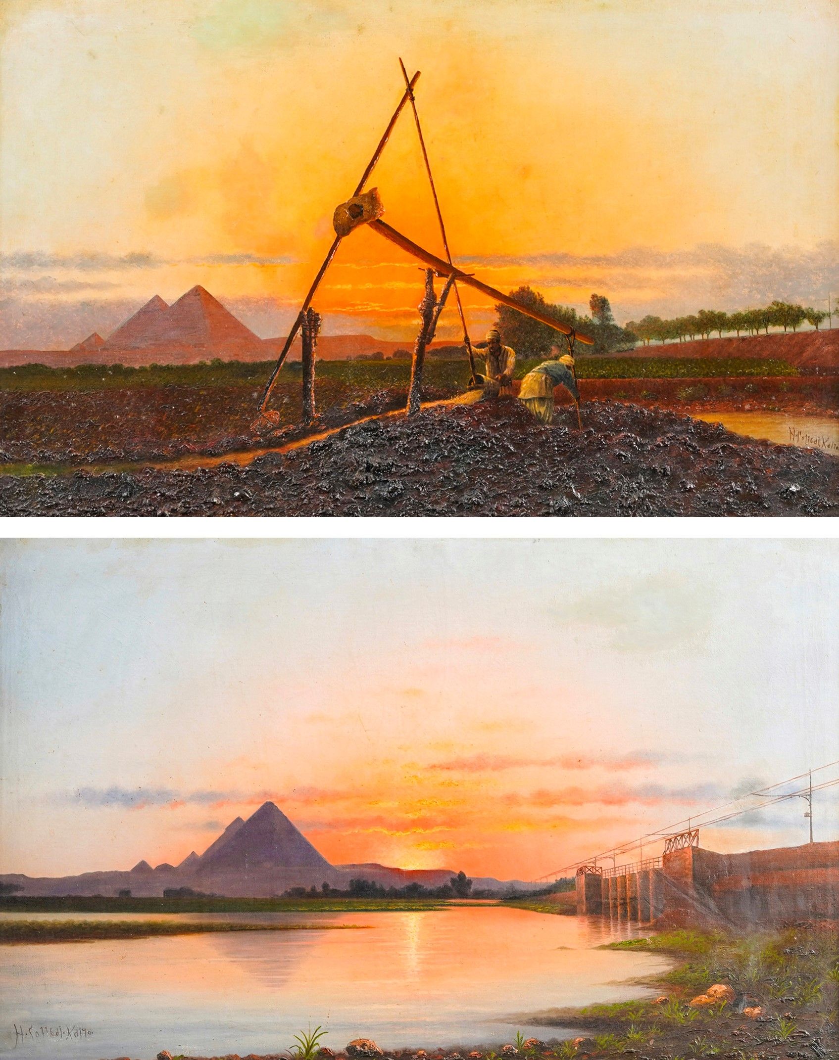Scuola del XIX secolo Vedute delle piramidi di Giza