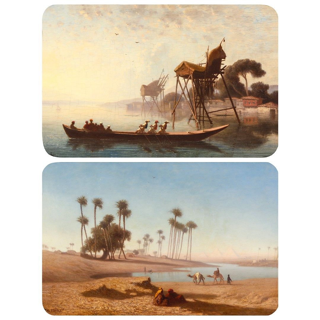 coppia di dipinti ad olio su tavola, Largh. 41 - Alt. 26,5 cm