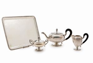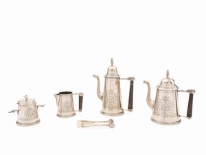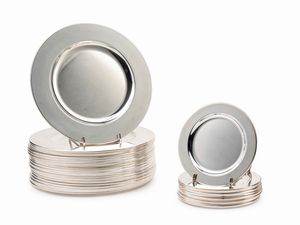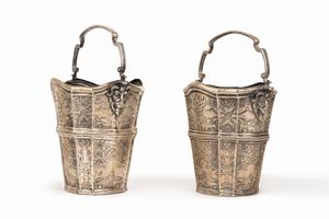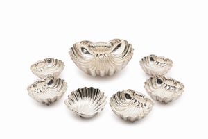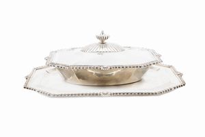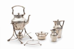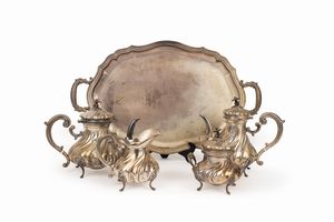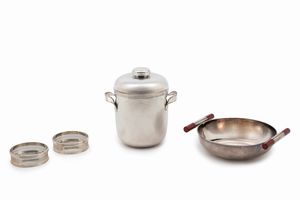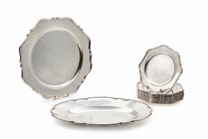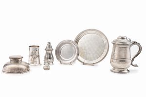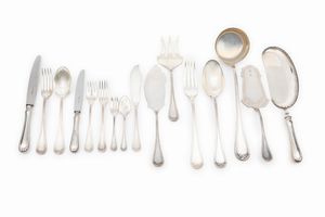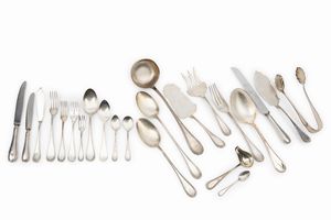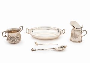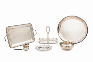 in argento, Peso kg 1,962 Italia, XX secolo composto da mestolino con aquila ed angelo in rilievo (1930), una [..]