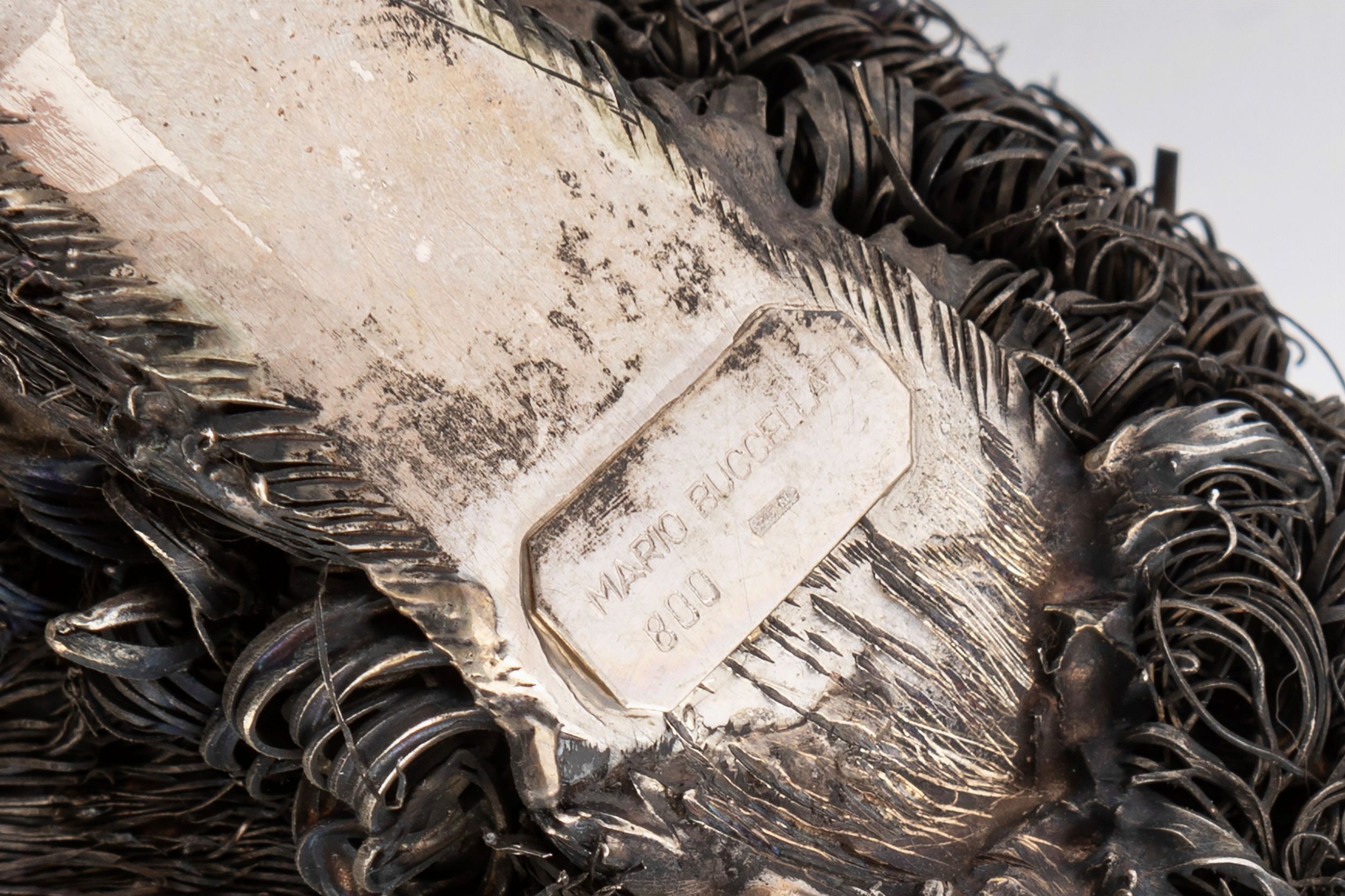 Milano, XX secolo fuso, sbalzato e cesellato, pelo lavorato a filo d’argento, firmato e punzonato su targhetta applicata, (Mario Buccellati, 800, 15MI).