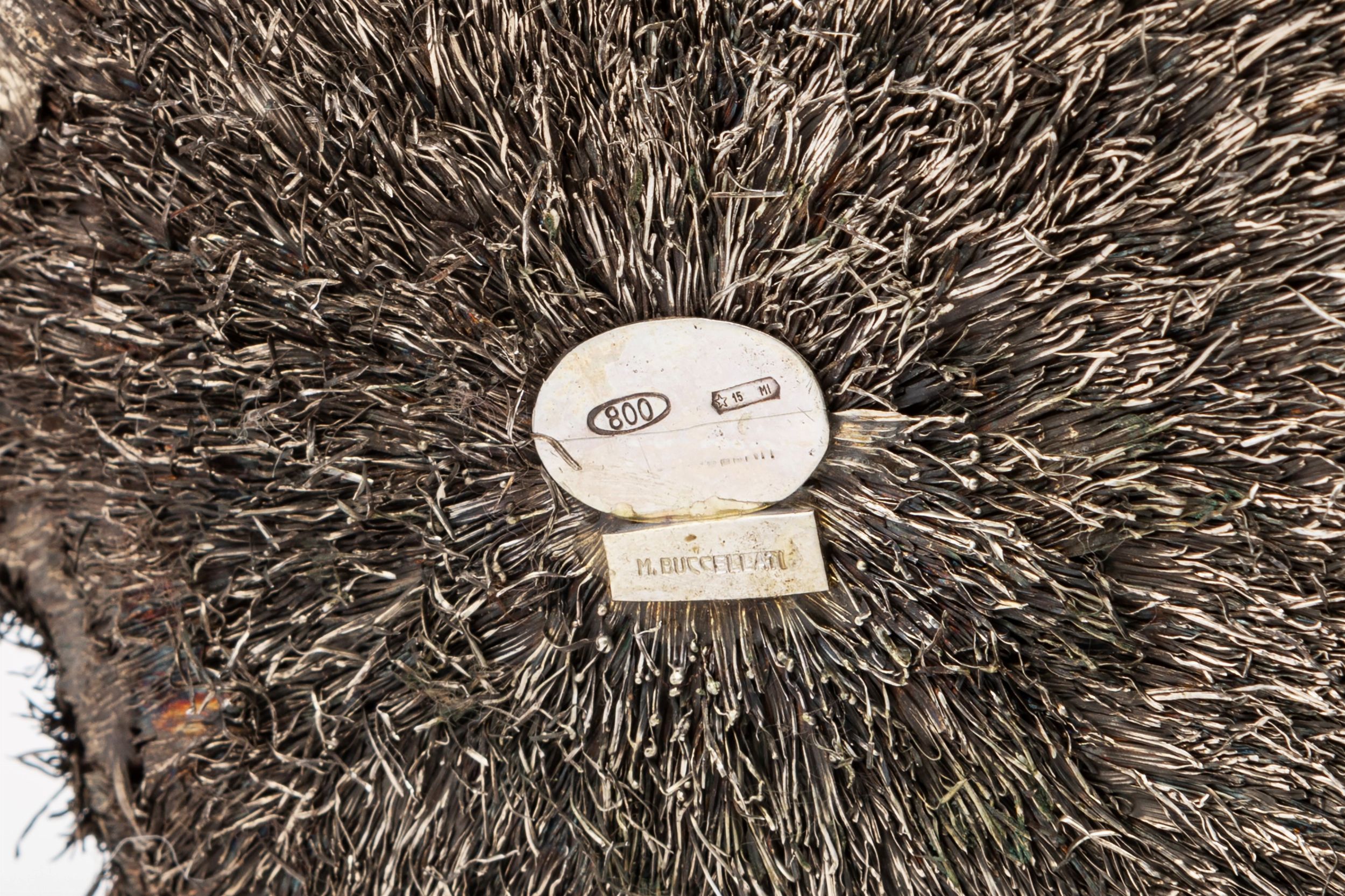 Milano, XX secolo fuso, sbalzato e cesellato, pelo lavorato a filo d’argento, firmato e punzonato su targhette applicate, (M.Buccellati, 800, 15MI).
