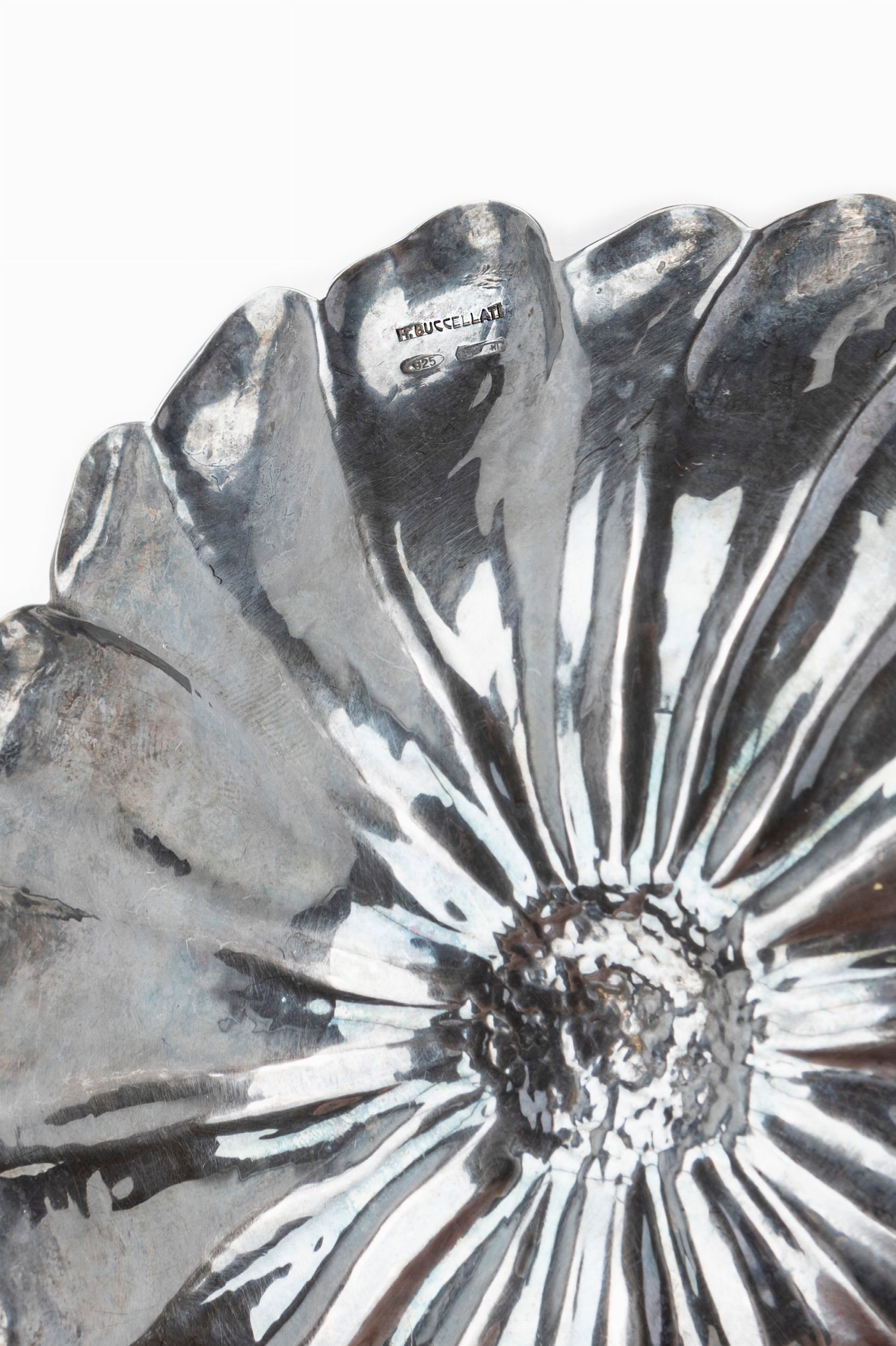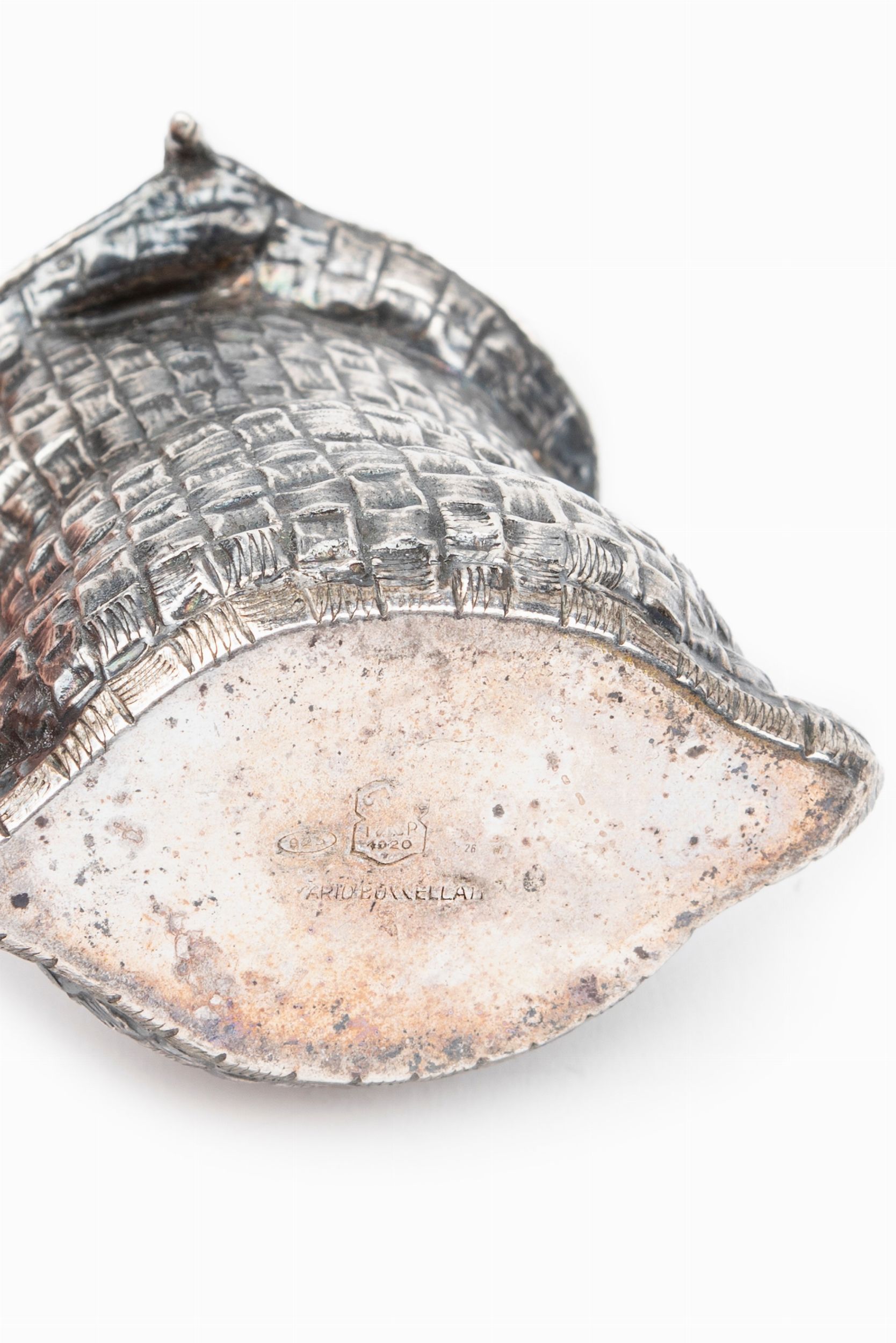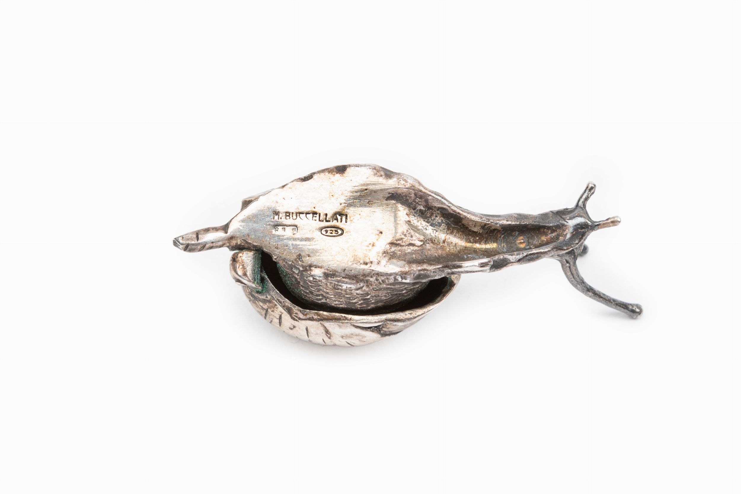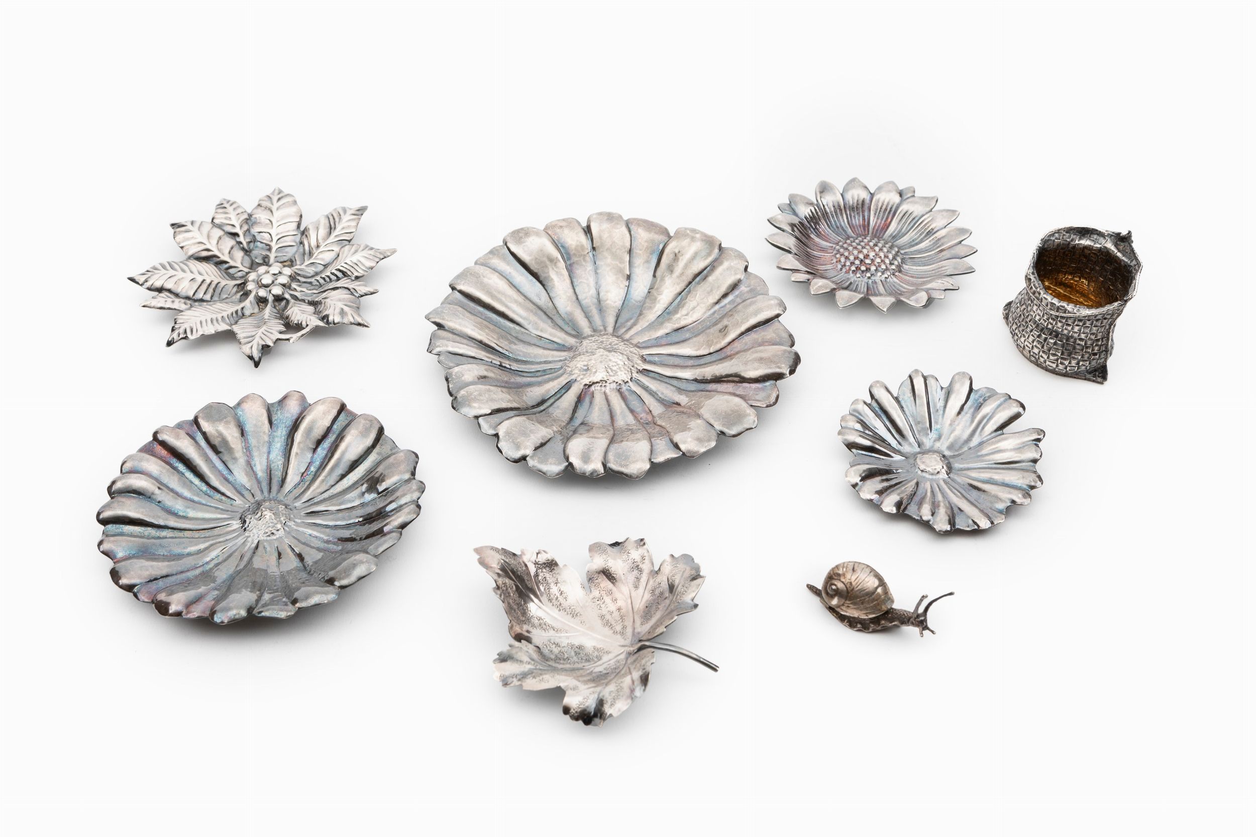 Milano, XX secolo quattro raffiguranti ciotola a fiore, uno raffigurante stella alpina, uno raffigurante foglia di vite, un sacchettino e una lumachina, firmati e punzonati.