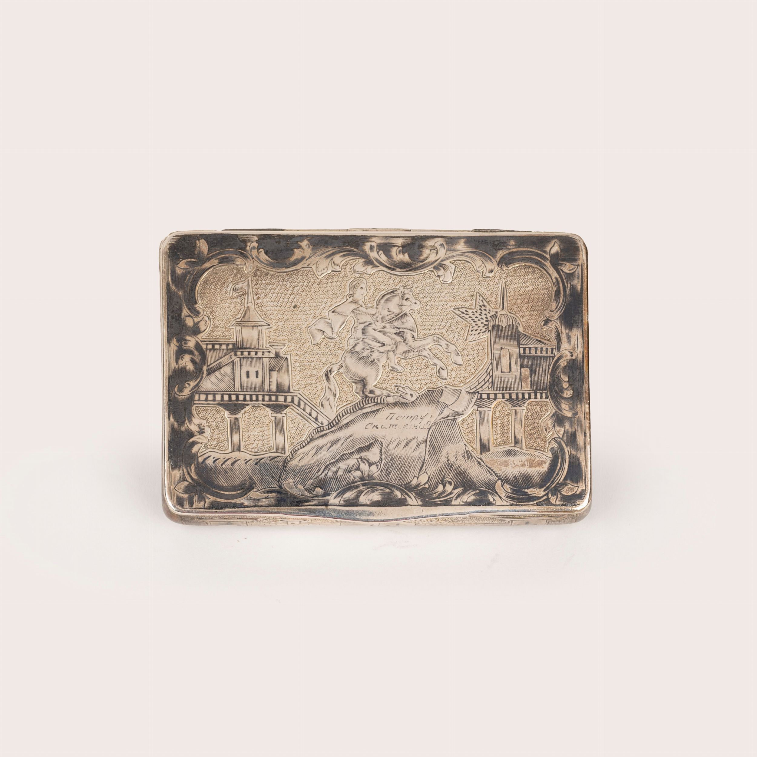 Russia, XIX secolo sul fronte raffigurante cavaliere con iscrizione in cirillico, al retro architetture, difetti (rottura della cerniera).