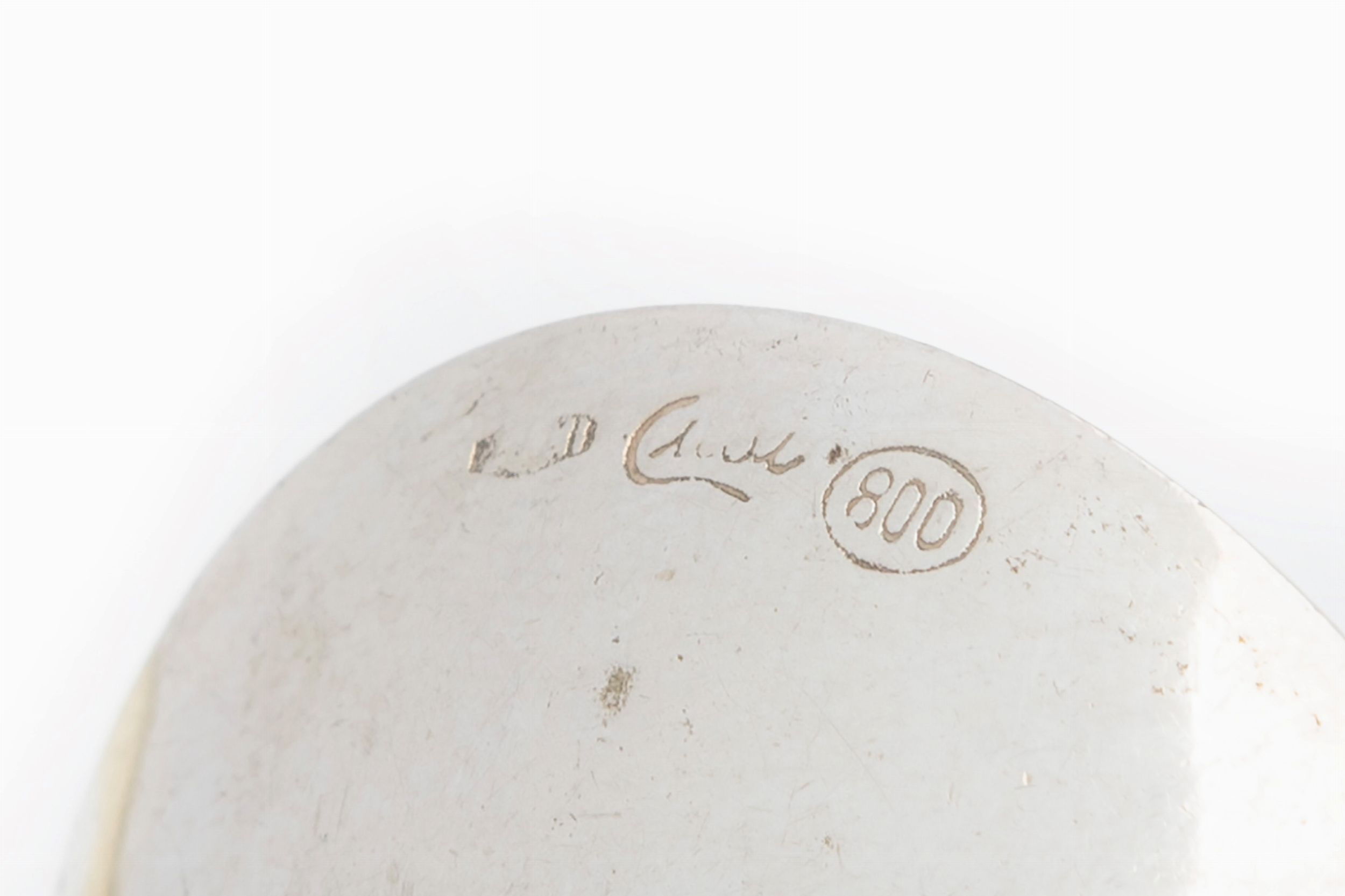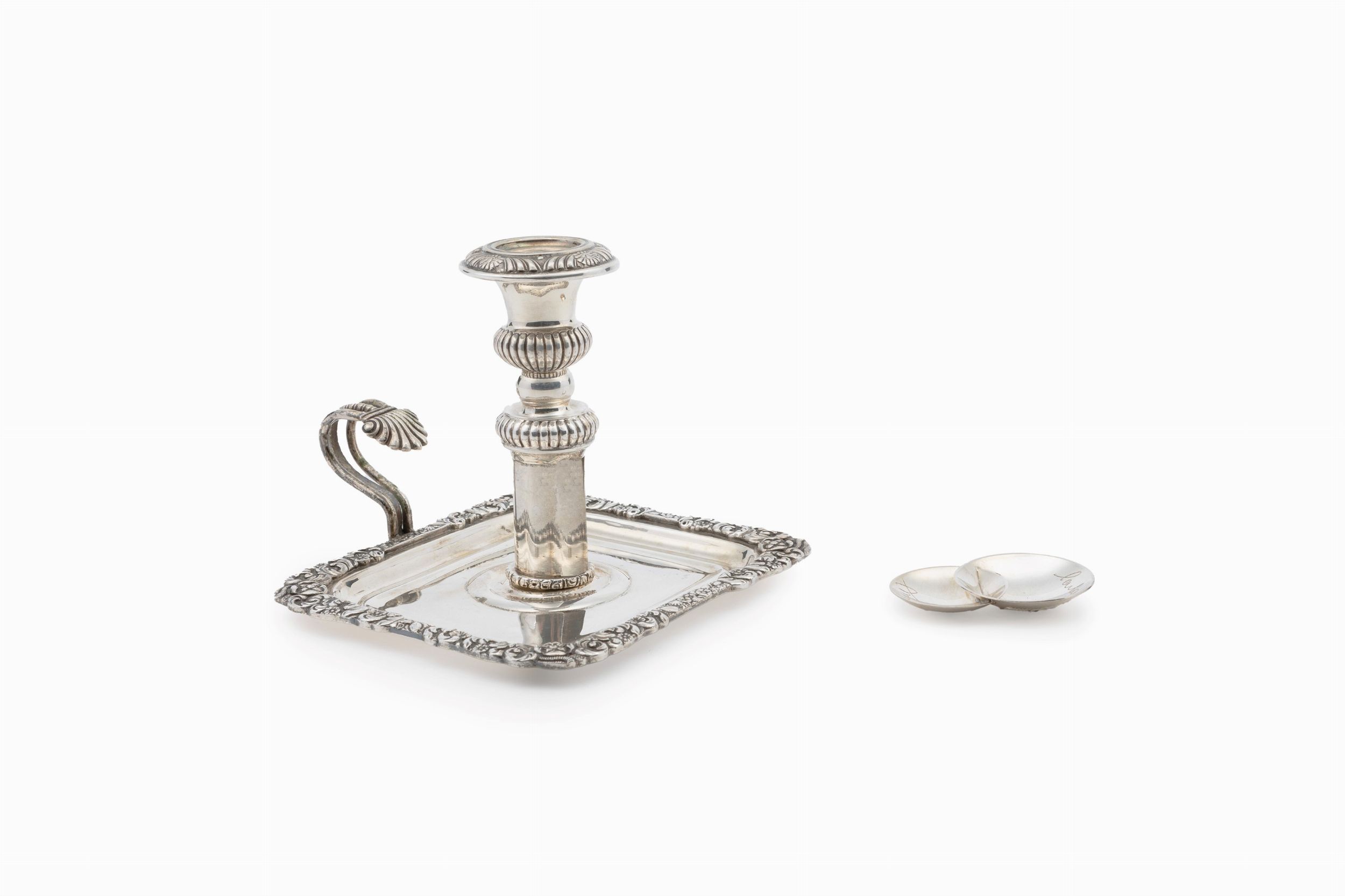 Italia, XX secolo porta candela con presa e bordo a decori a rilievo e ciotolina a due scomparti con incisioni 'Carlo, Anna'.