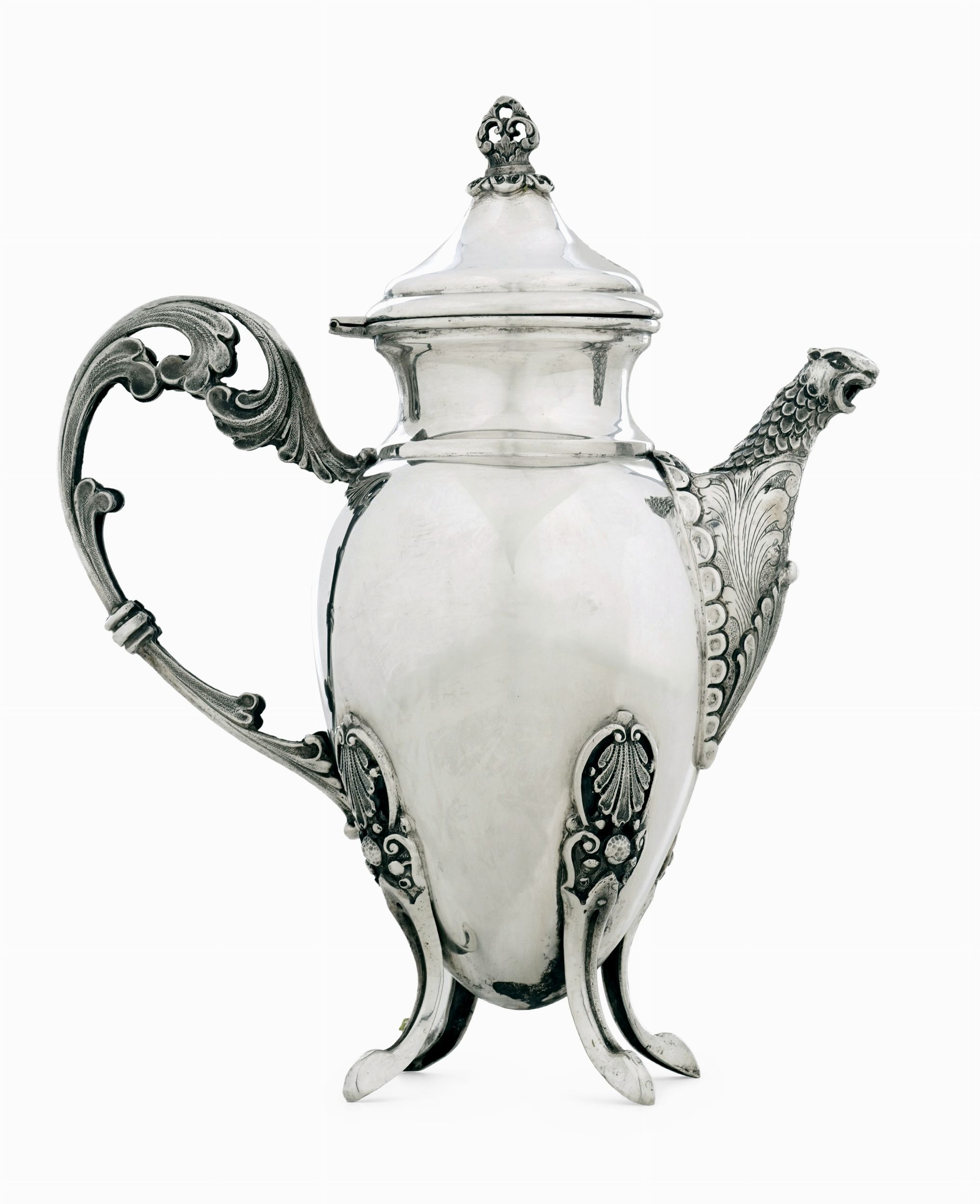 Argento fuso, sagomato e cesellato, gr 590 cm 9X21X25