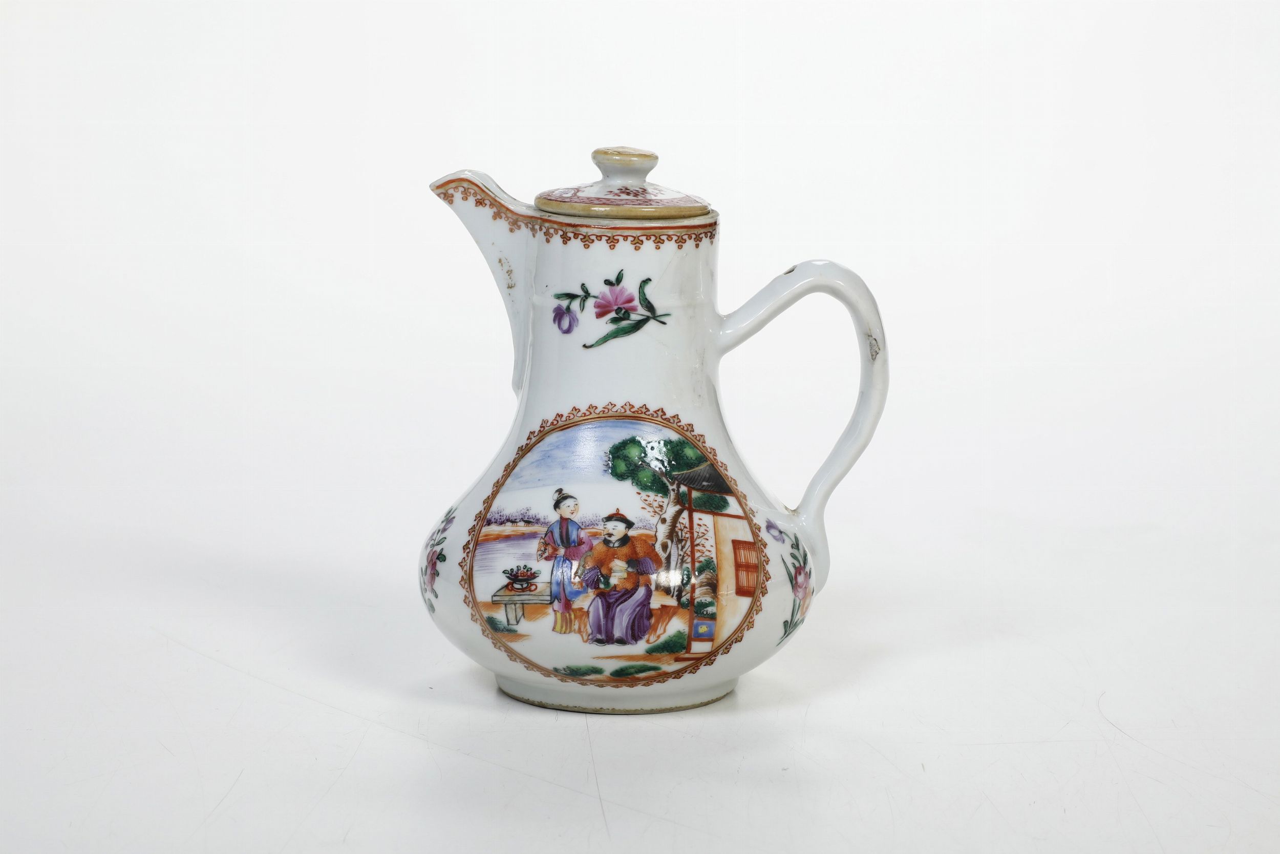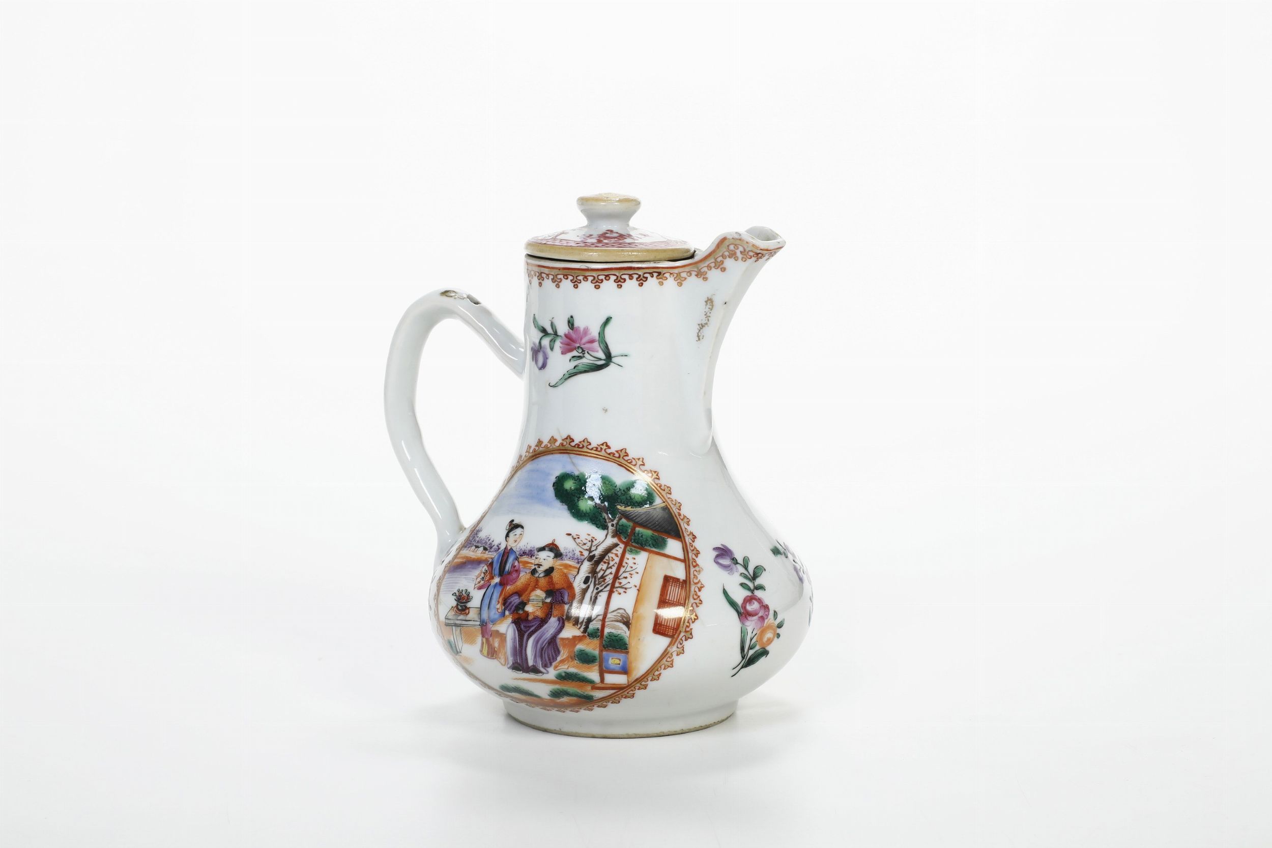 Caffettiera in porcellana Famiglia Rosa con scena di vita comune entro riserva, [..]