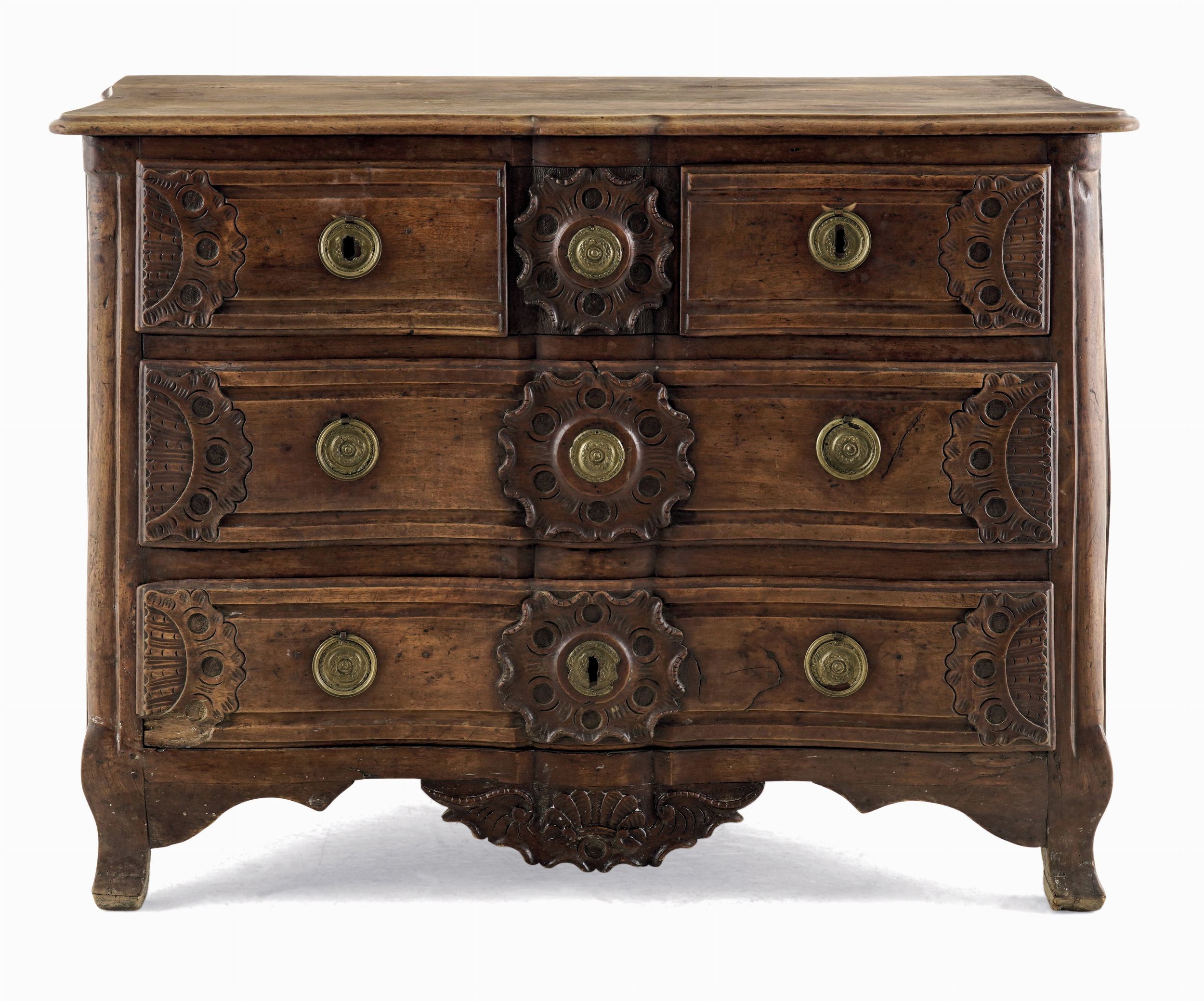 Cassettone in noce intagliato. Francia, XVIII secolo