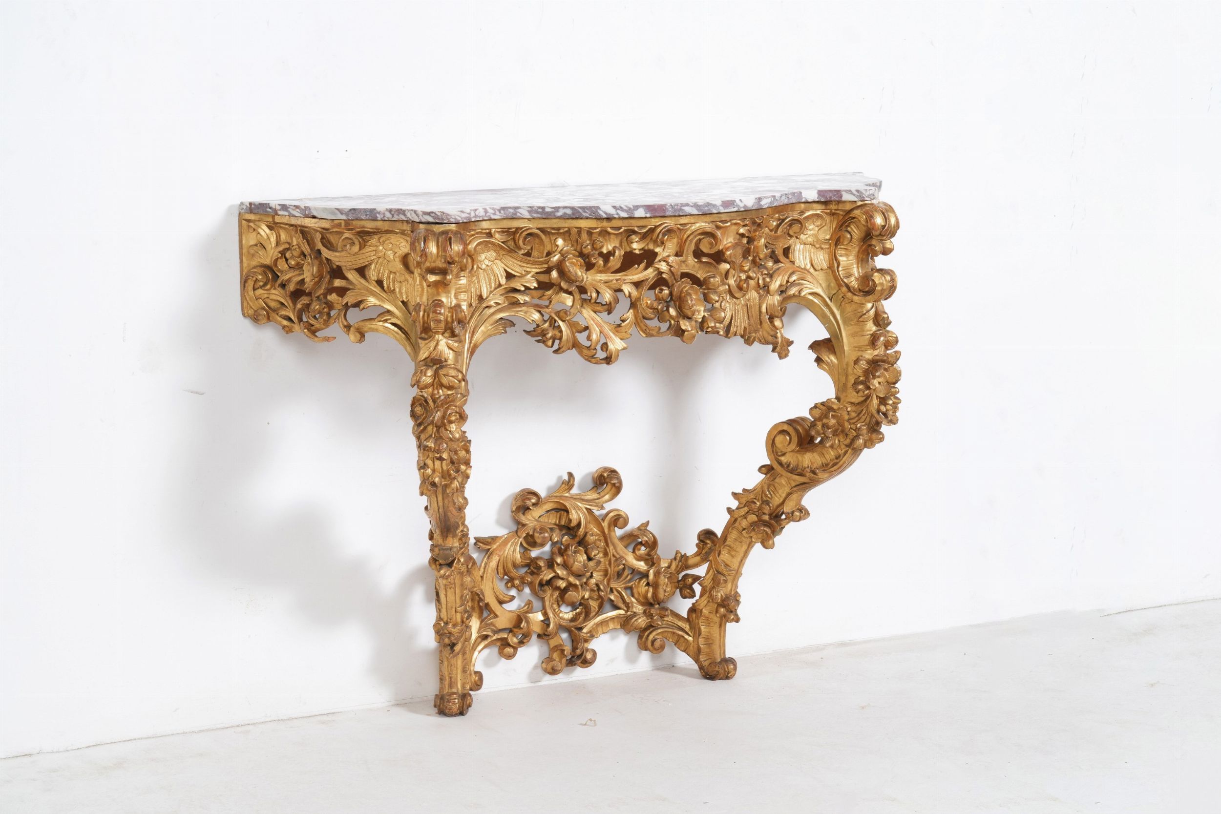 Consolle in legno riccamente intagliato e dorato. XIX secolo