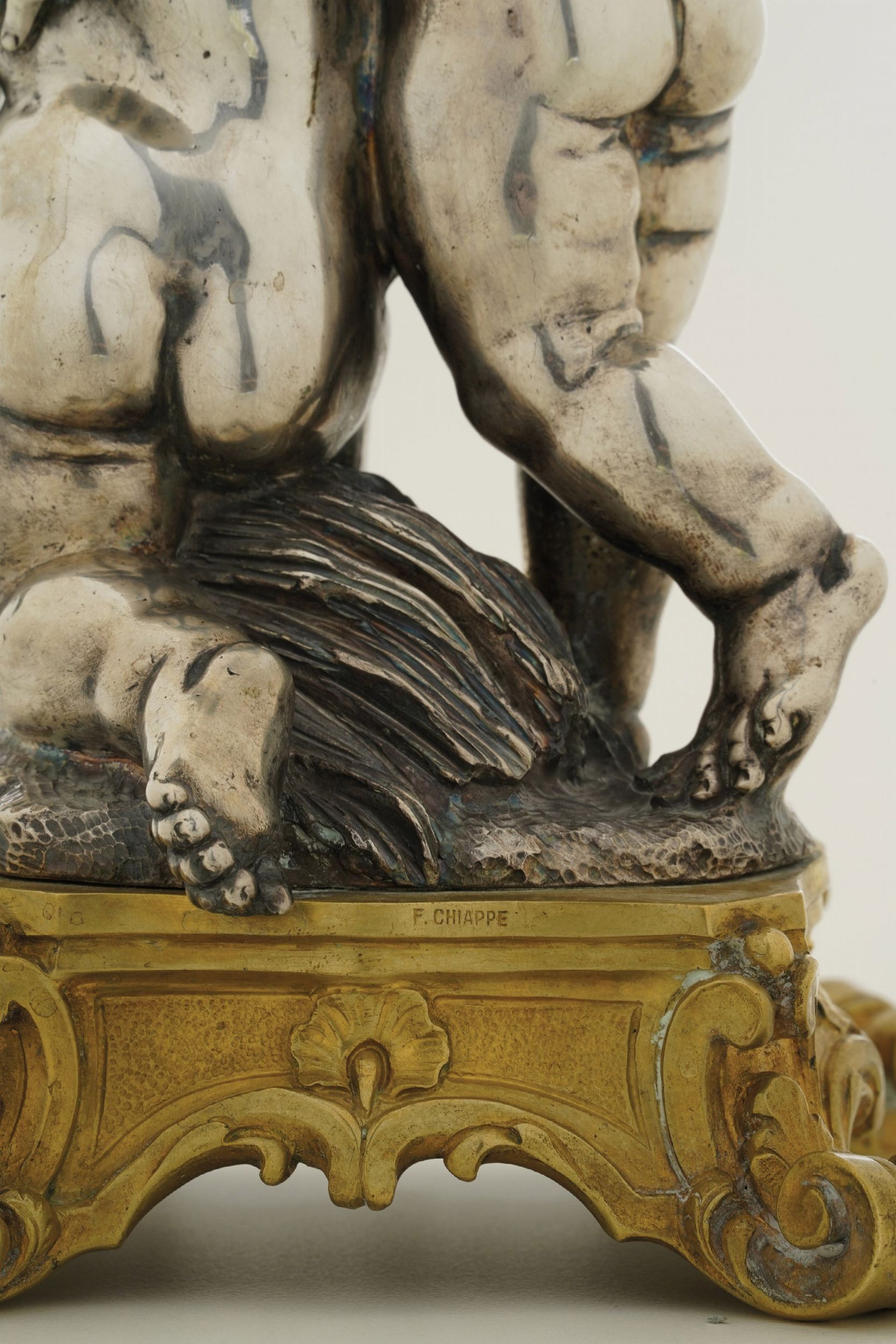 argento fuso e cesellato e basi in bronzo fuso e dorato, cm 13X13X25