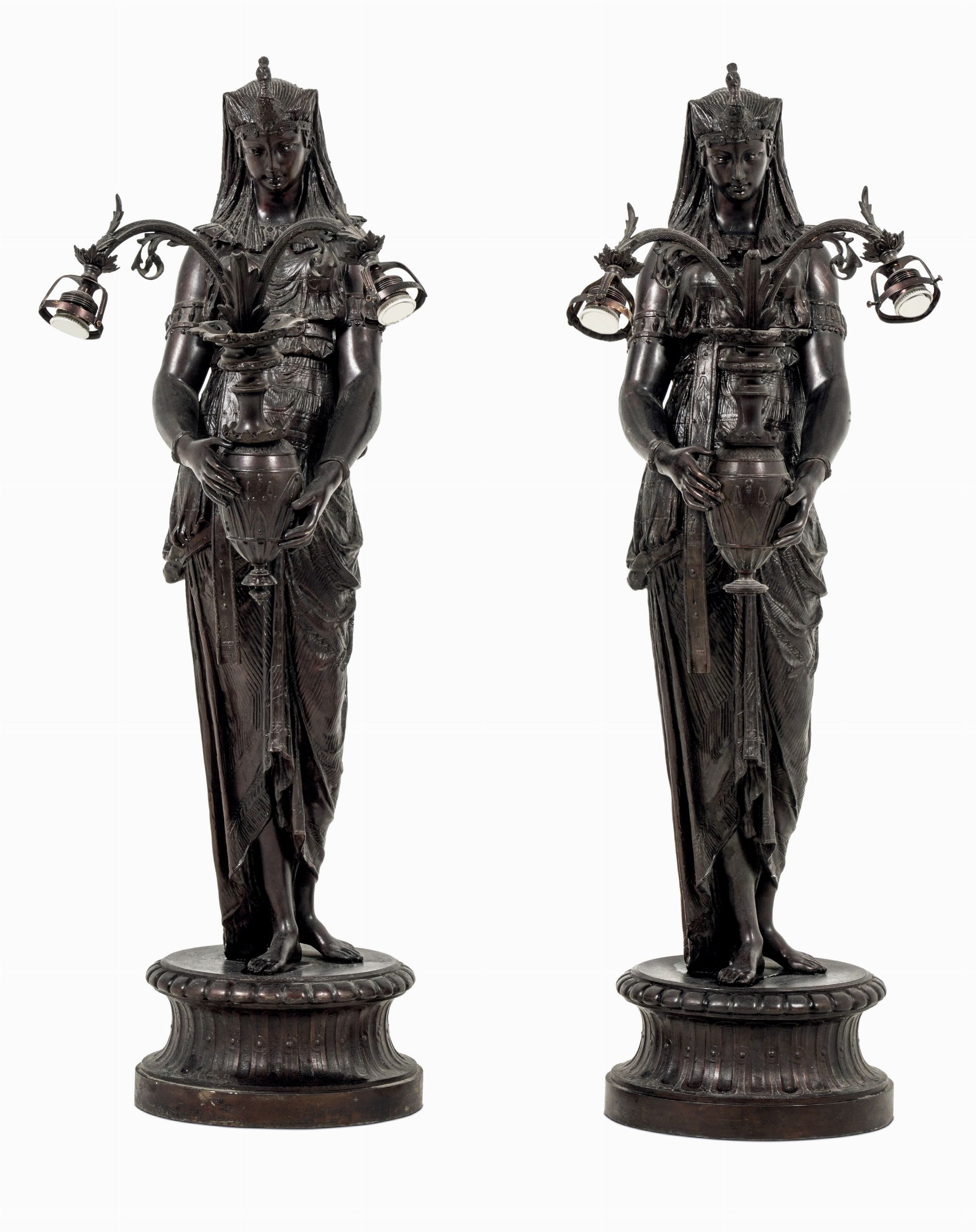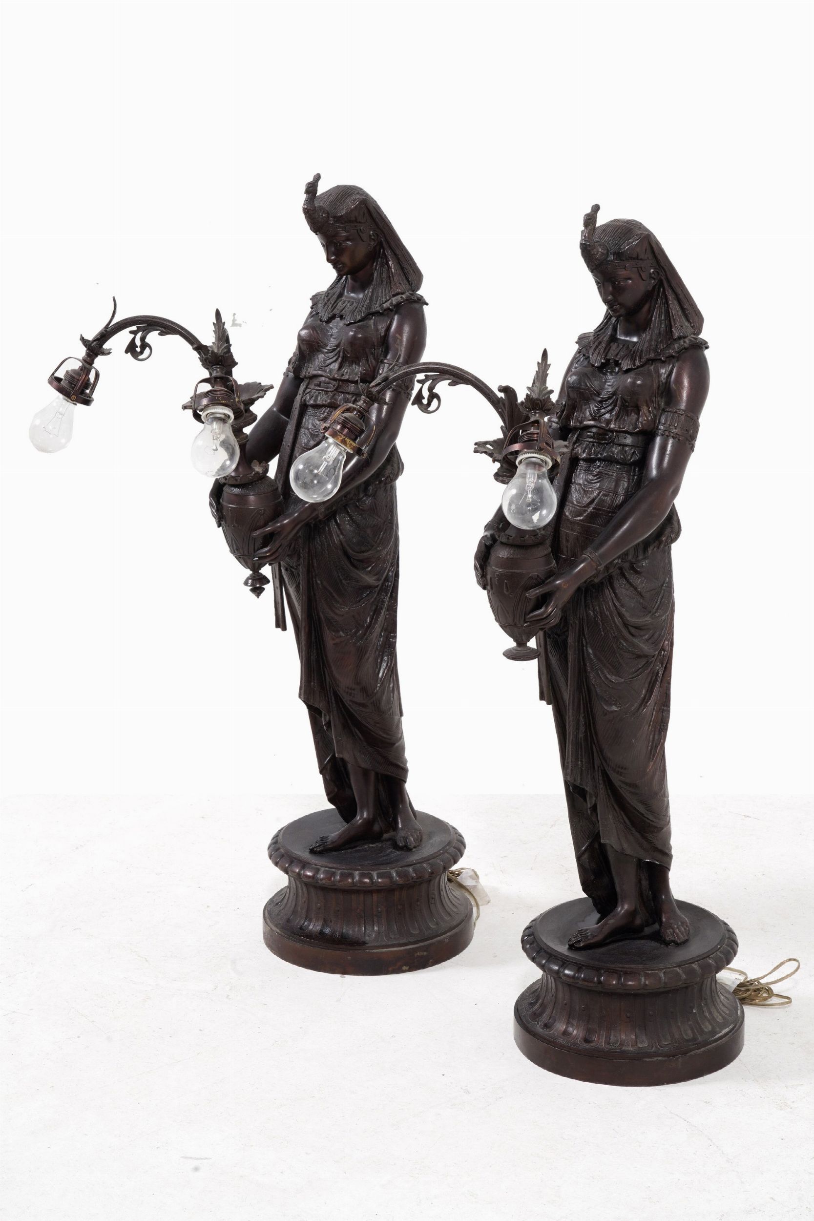 Coppia di lampade in bronzo patinato. Inizi XX secolo