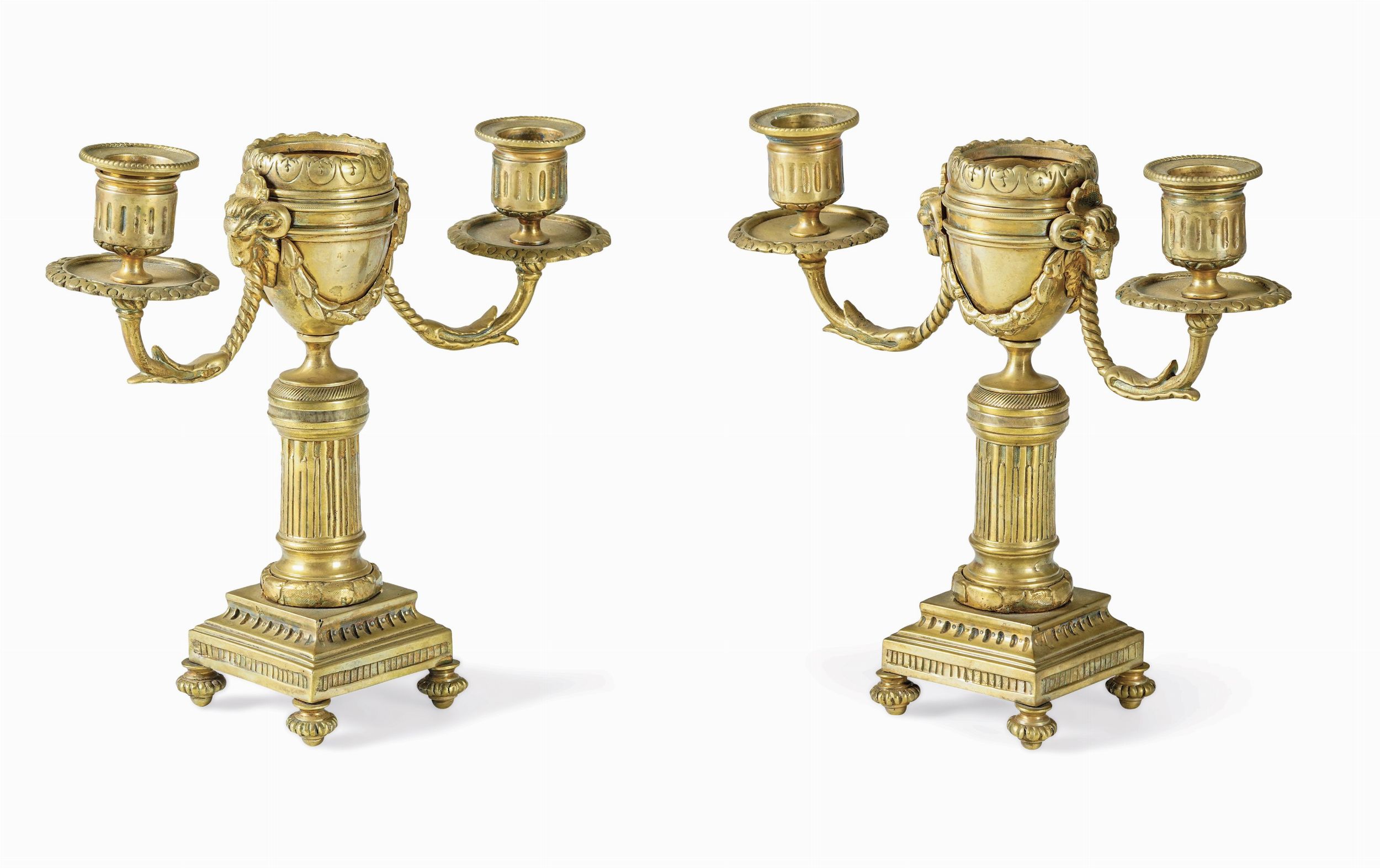 Coppia di piccoli candelabri in bronzo dorato. XIX secolo