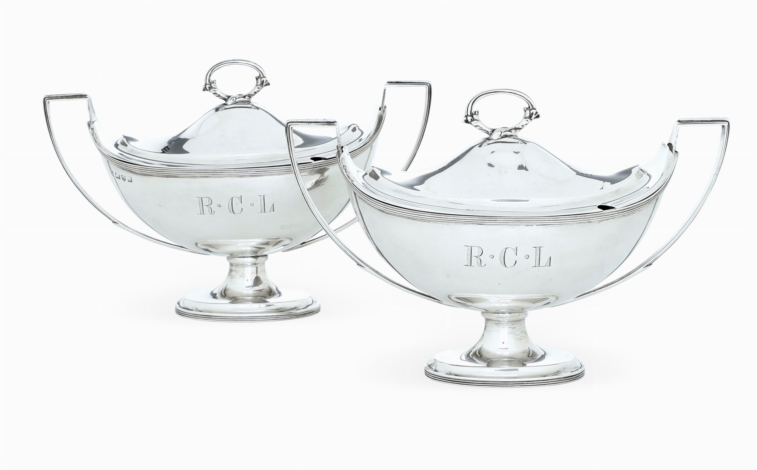 Coppia di salsiere. Chester 1896, marchio dell'argentiere non identificato