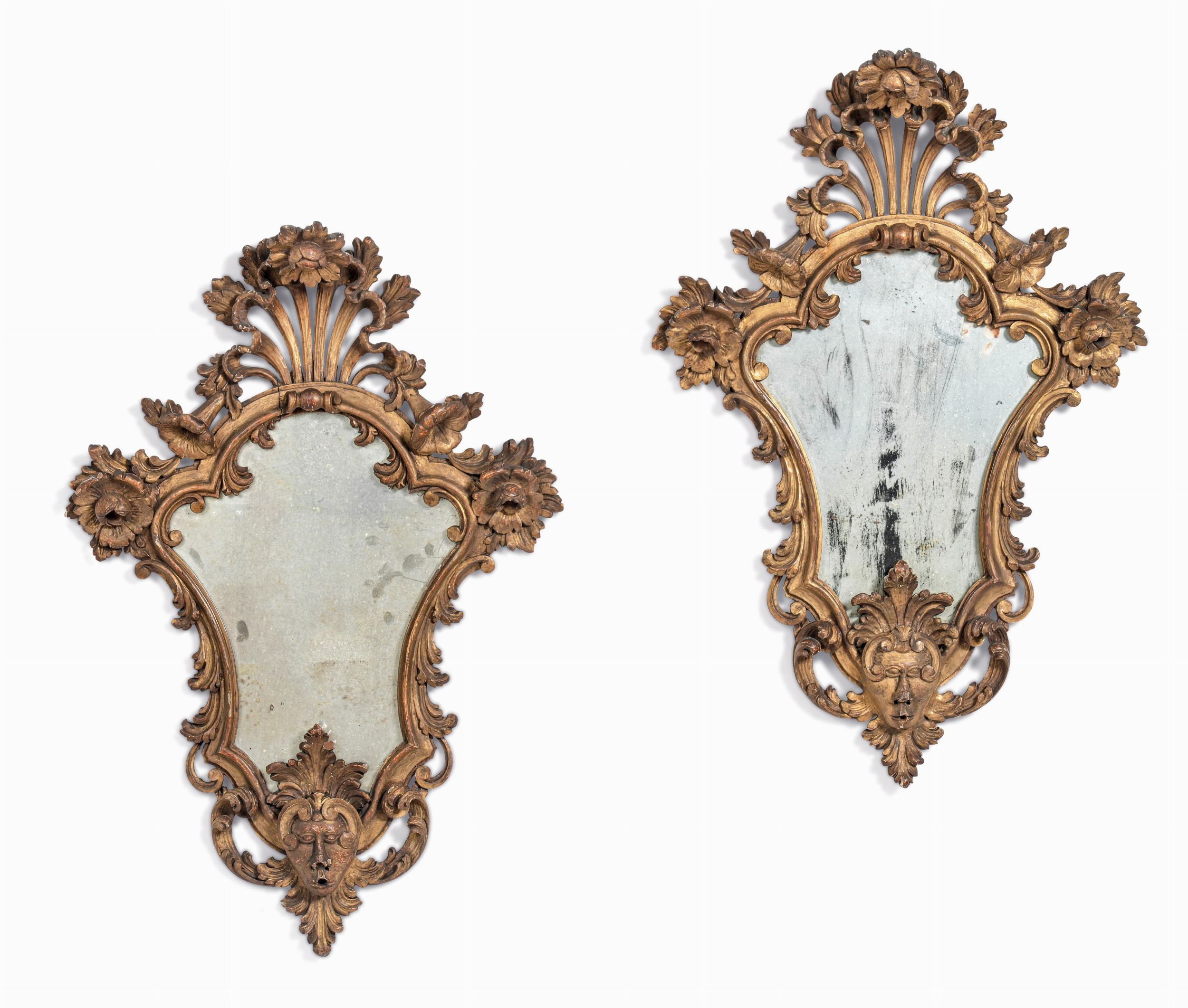 Coppia di specchierine in legno intagliato e dorato. XX secolo
