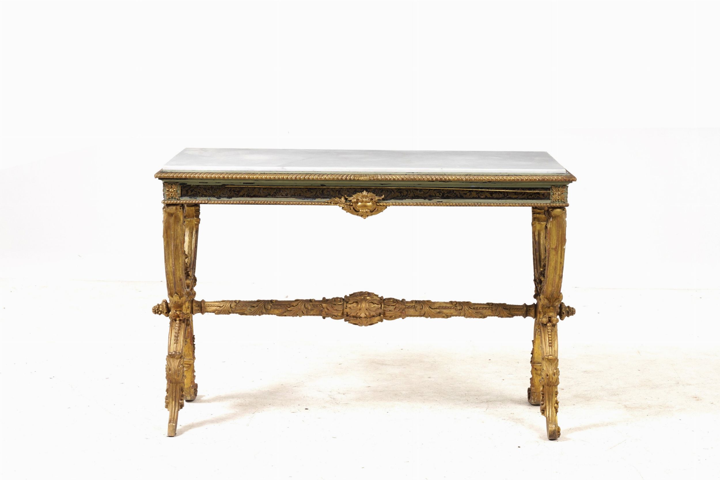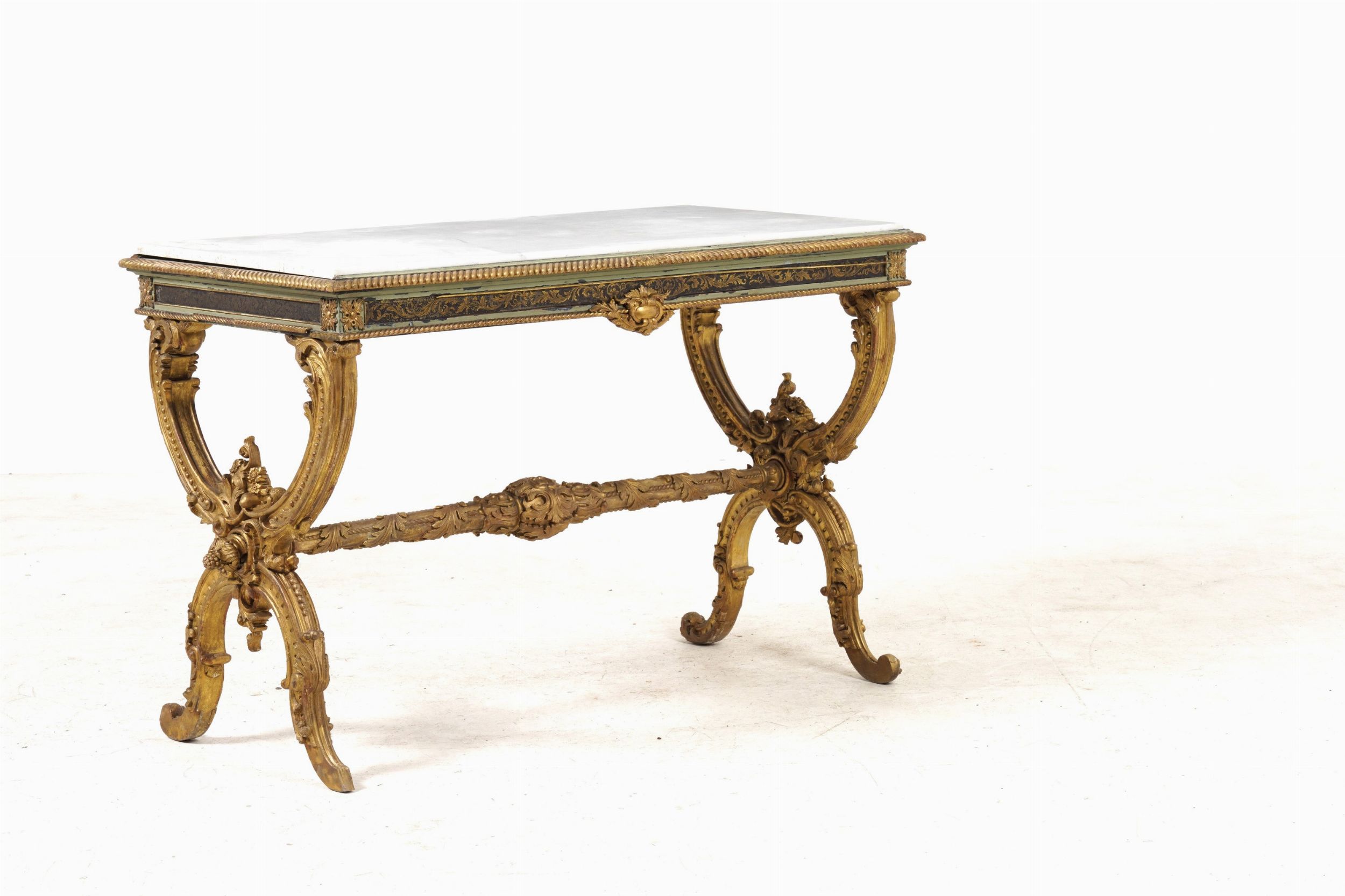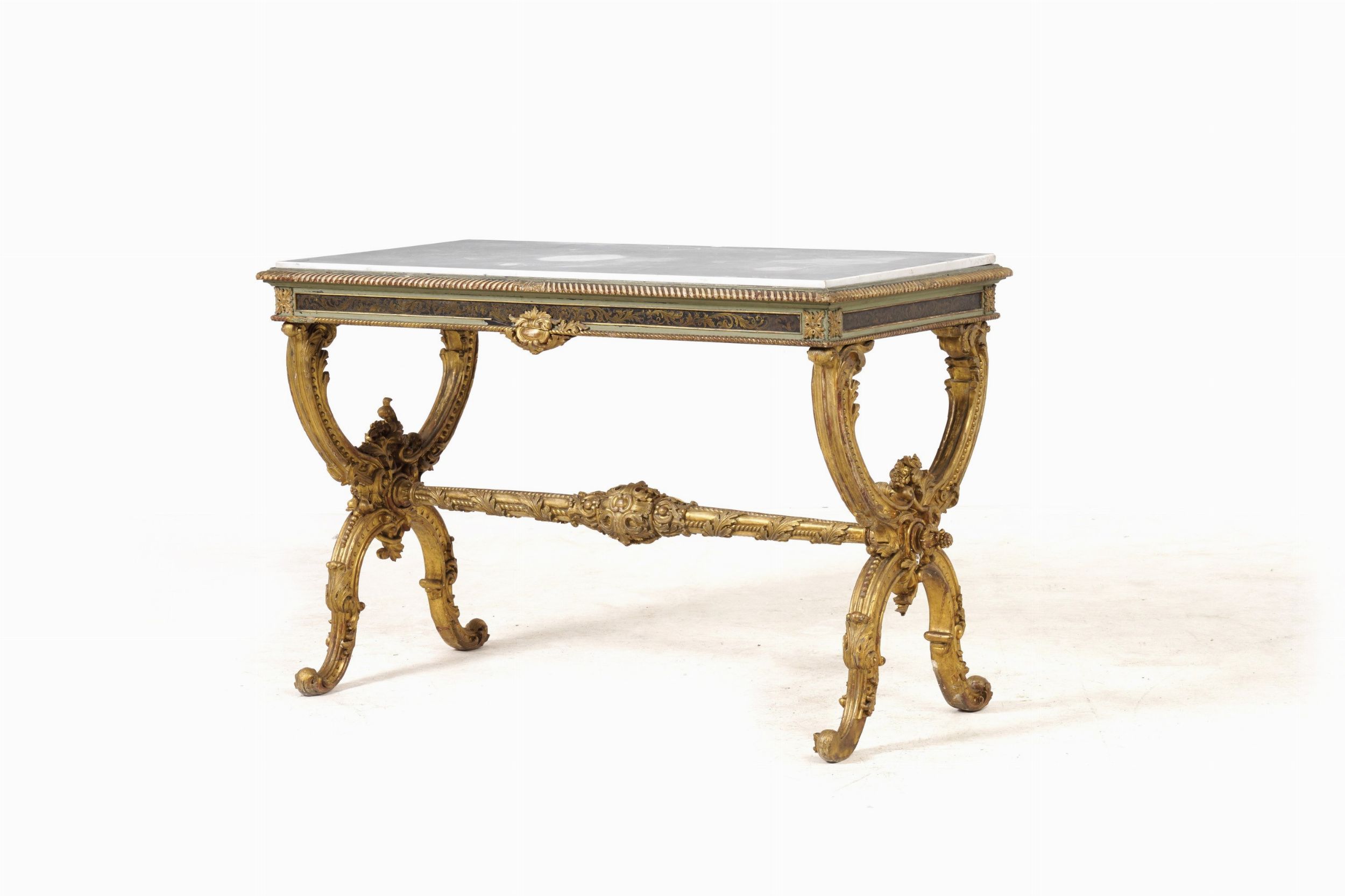 Coppia di tavoli da centro in legno laccato e dorato. XX secolo