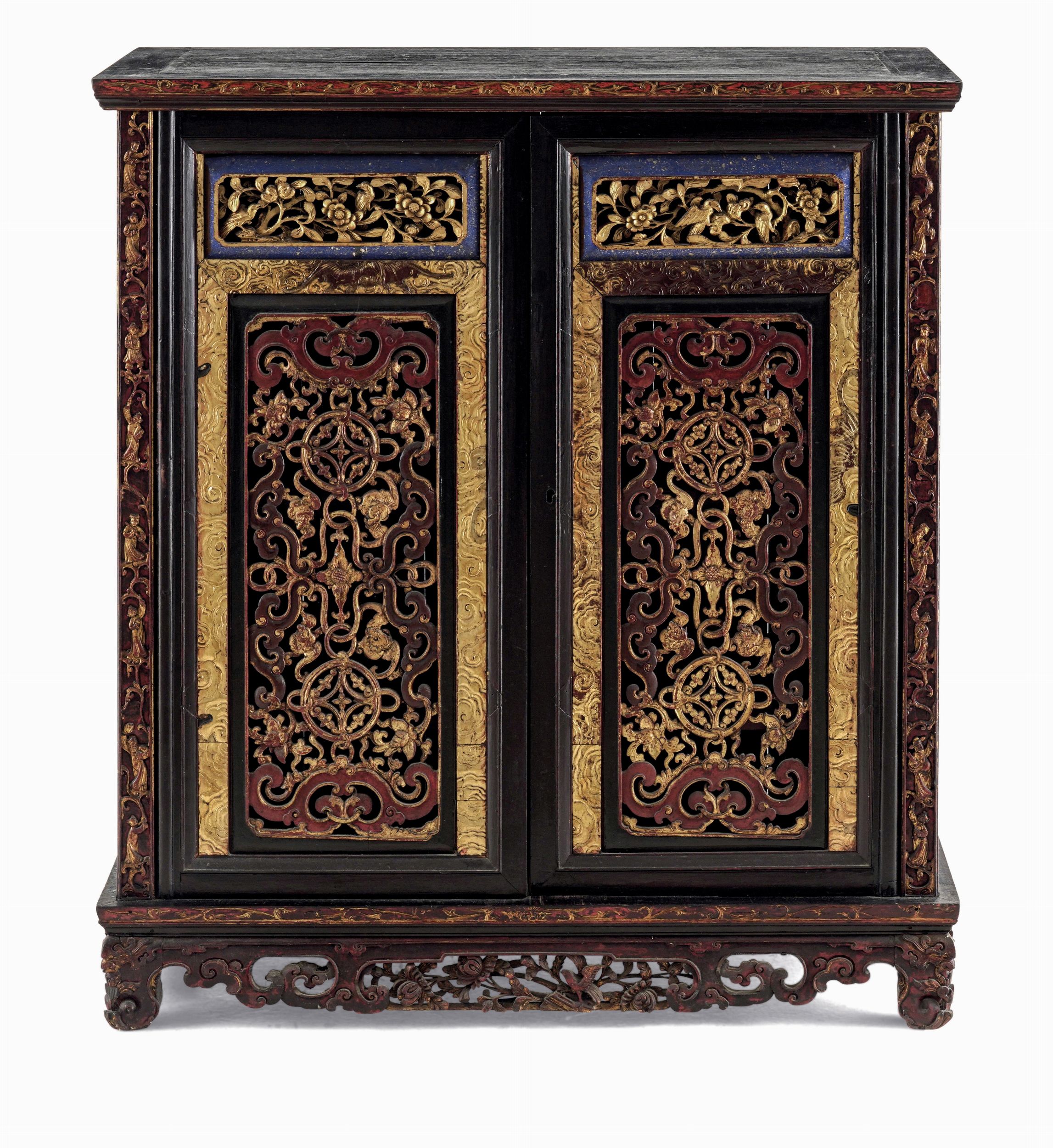 Credenza in legno laccato e dorato con decori naturalistici, Canton, Cina, Dinastia [..]