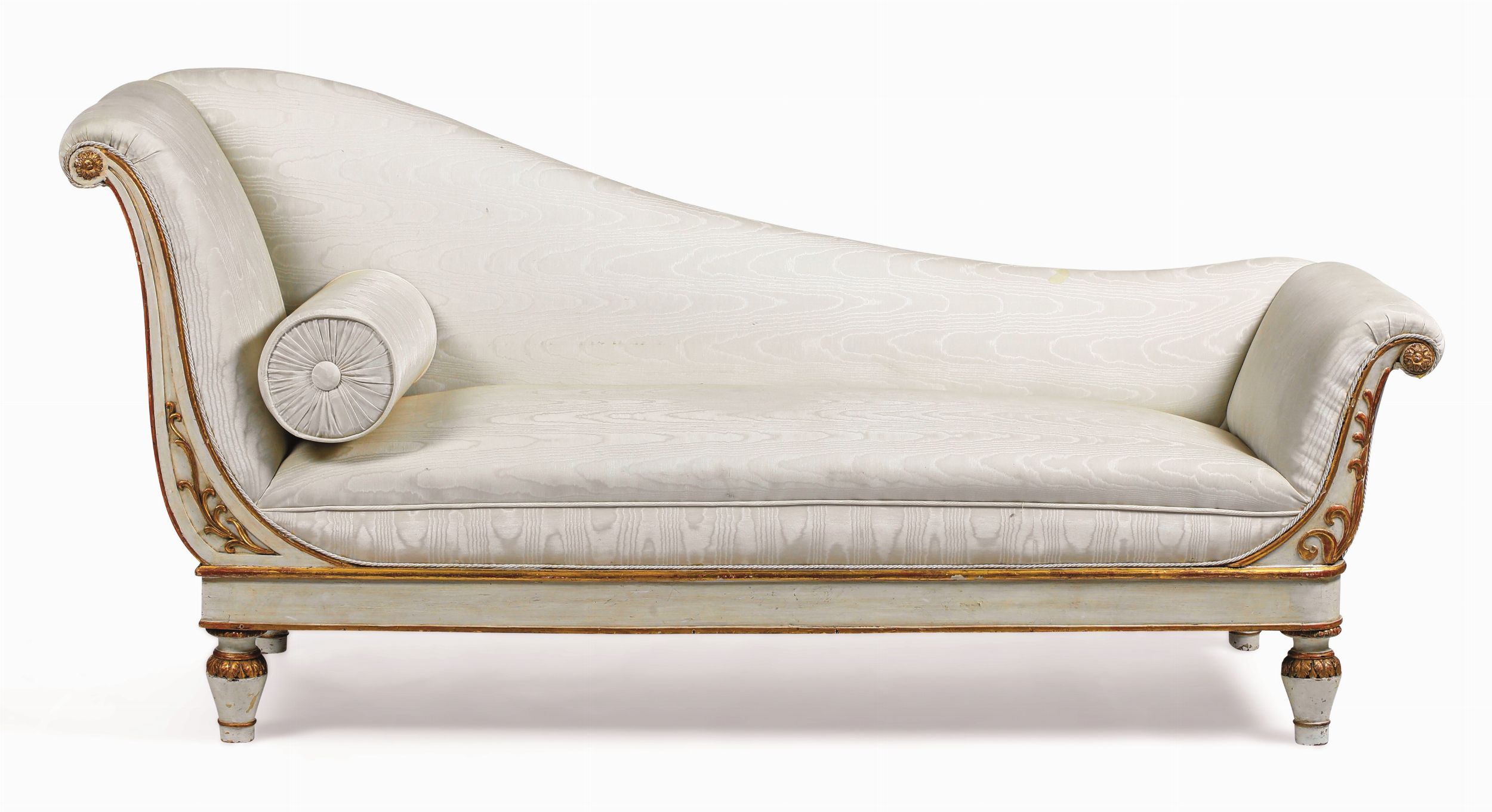 Dormeuse in legno intagliato, laccato e dorato. XVIII-XIX secolo