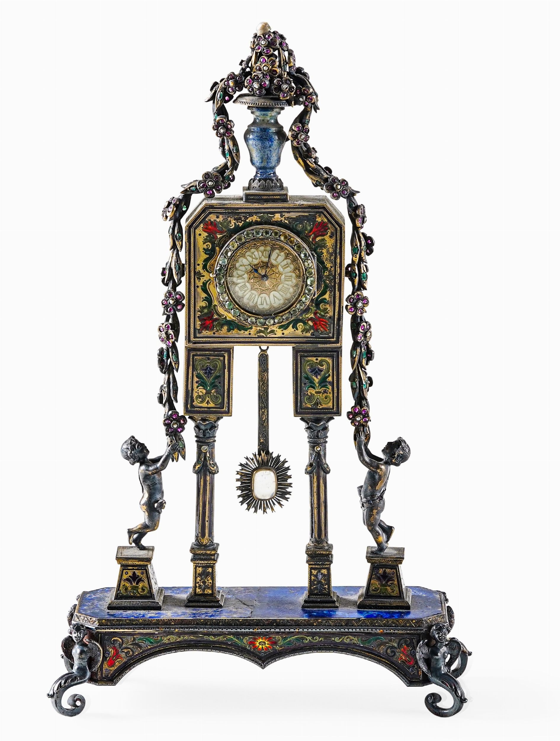 Elegante orologio da tavolo in argento, probabilmente Austria, fine del XIX secolo [..]