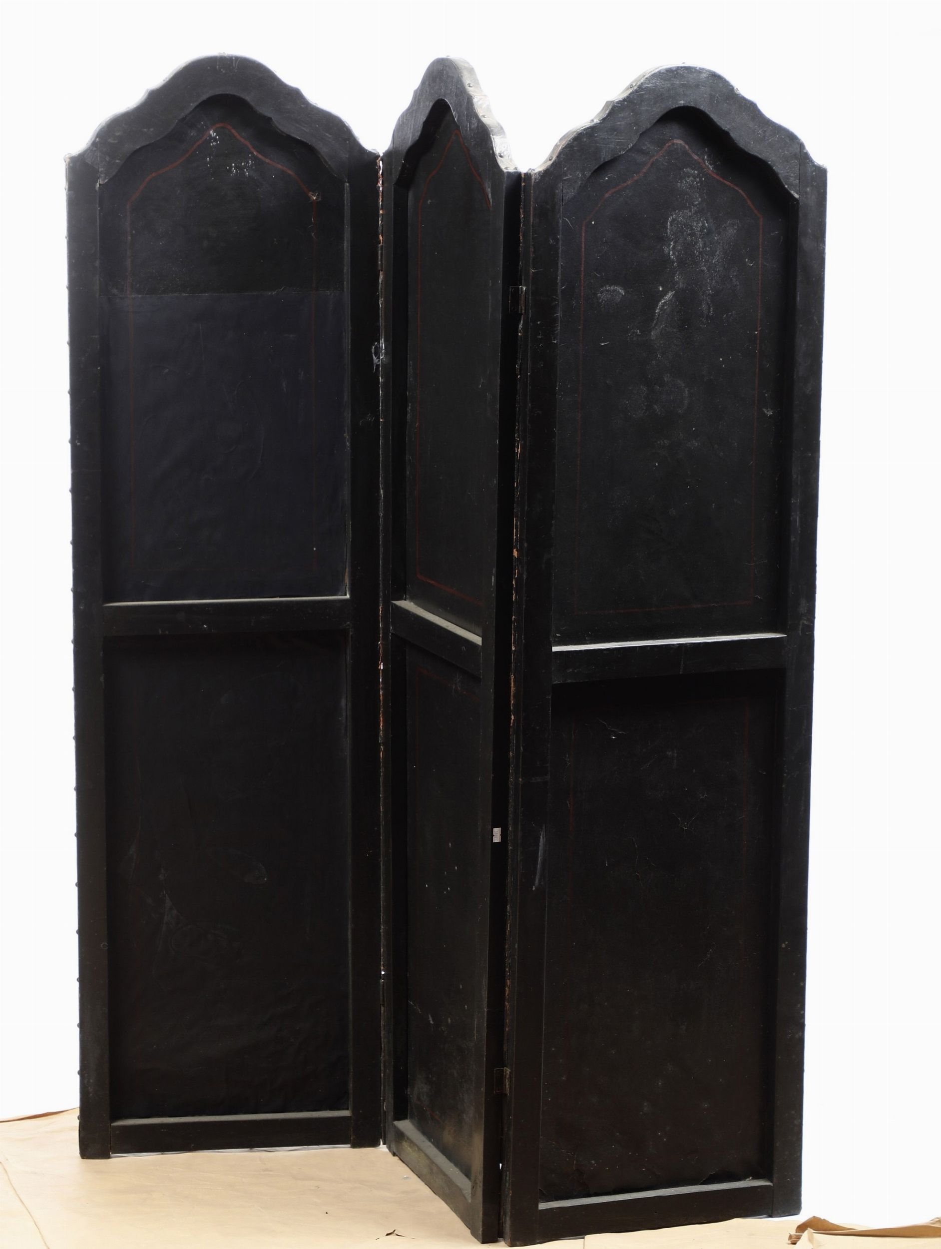 Paravento rivestito in cuoio impresso e dipinto. XIX-XX secolo