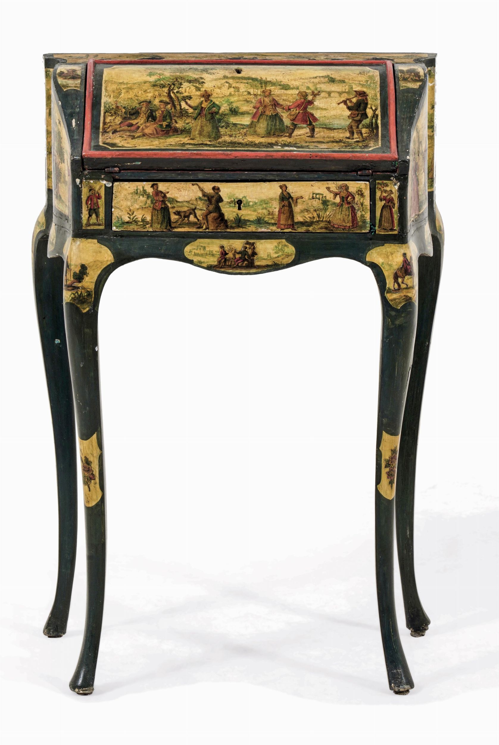 Piccola ribalta in legno laccato decorato ad arte povera. Venezia, XVIII secolo