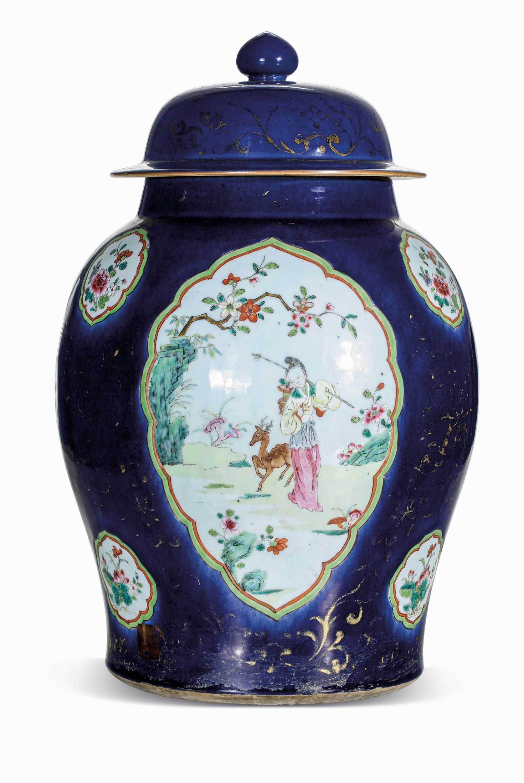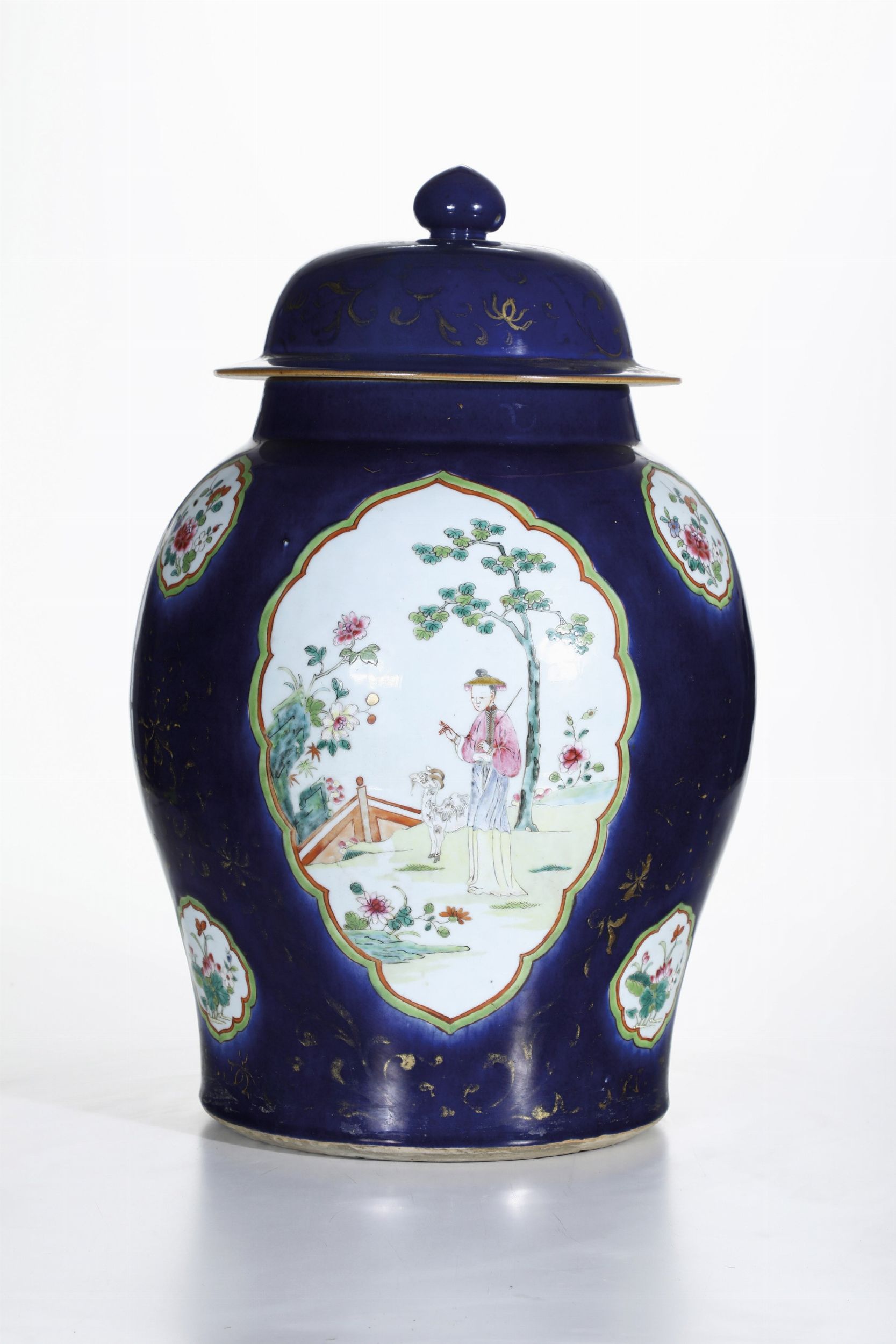 Potiche in porcellana Famiglia Rosa, Blu Poudrč con fanciulla entro riserve a decoro [..]