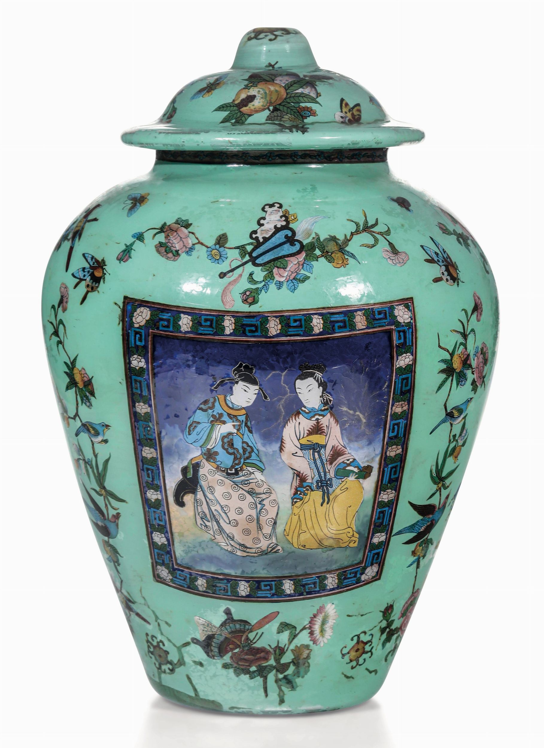 Potiches con coperchio in vetro soffiato decorato ad arte povera. Piemonte, XIX [..]
