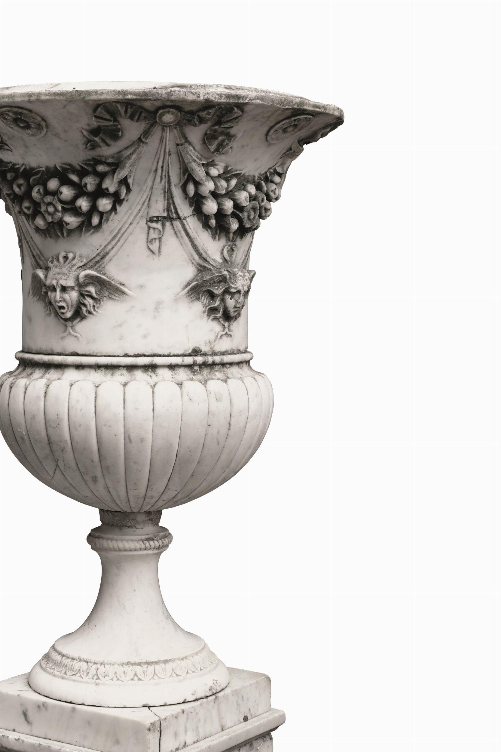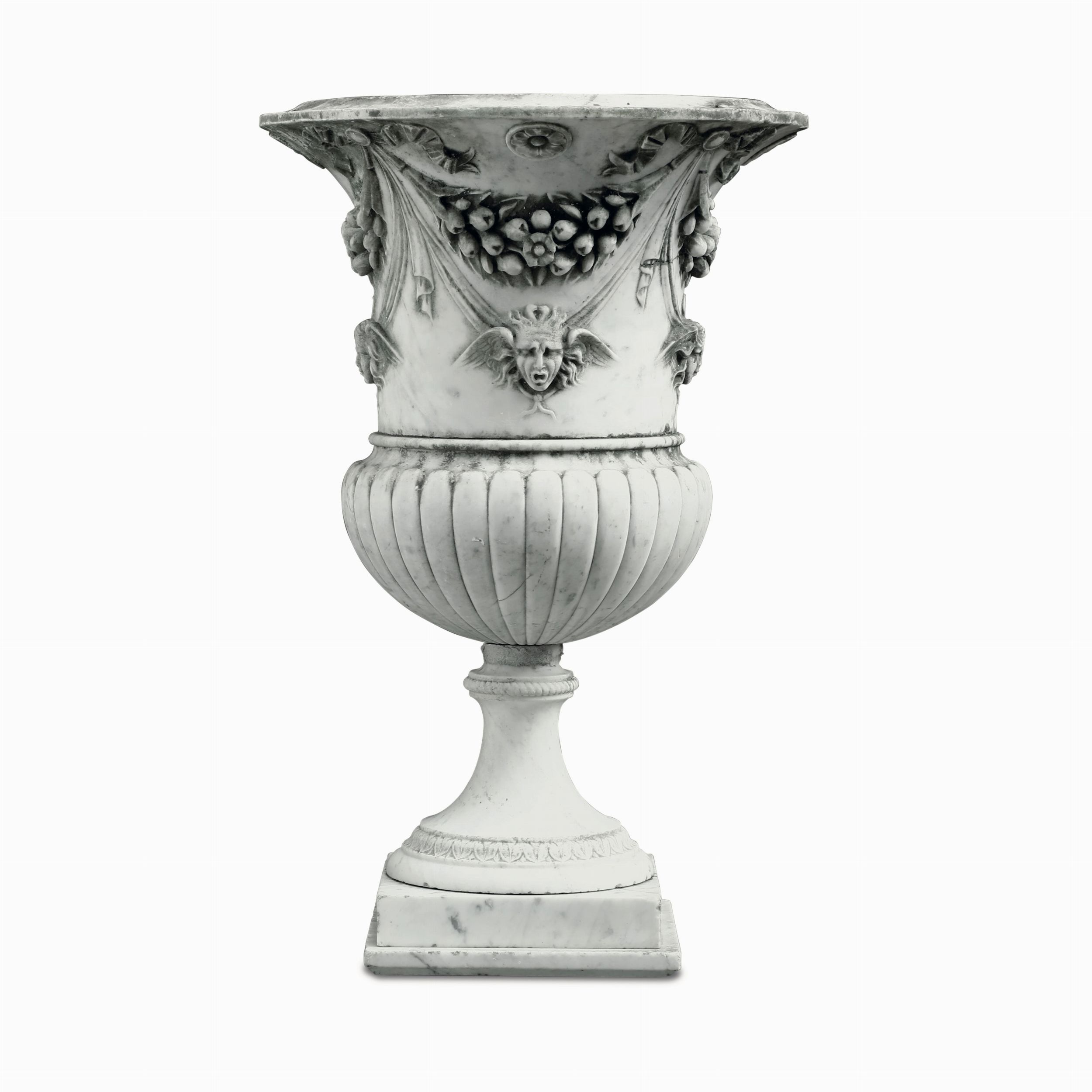 Quattro imponenti vasi medicei in marmo bianco. XIX-XX secolo