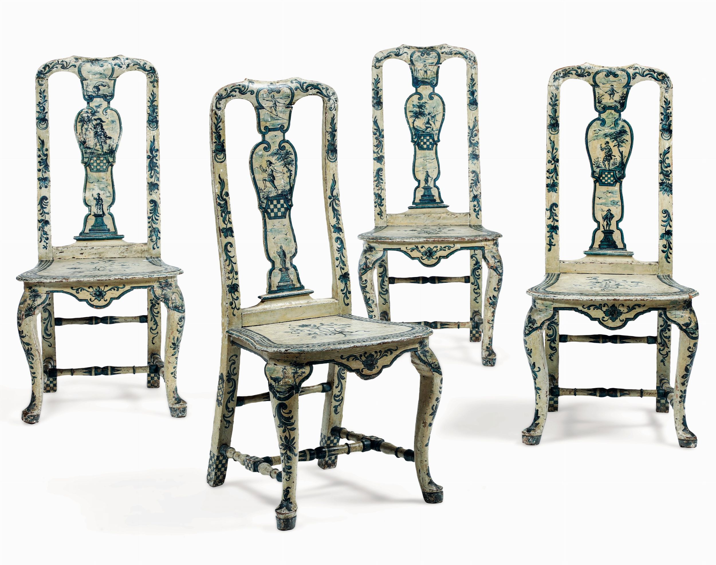 Quattro sedie Luigi XV in legno laccato. Probabilmente