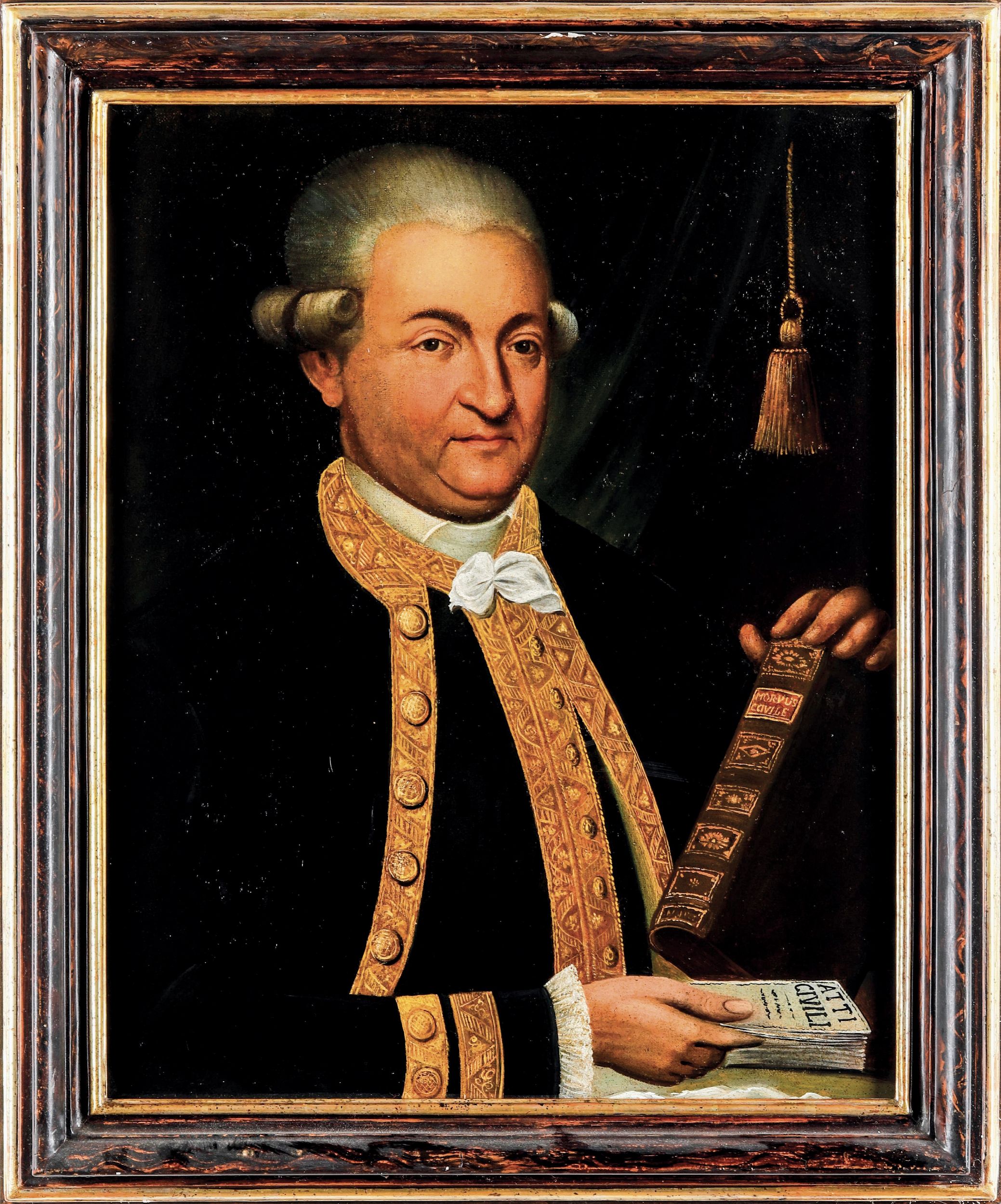 Scuola del XVIII secolo Ritratto di gentiluomo nello studio