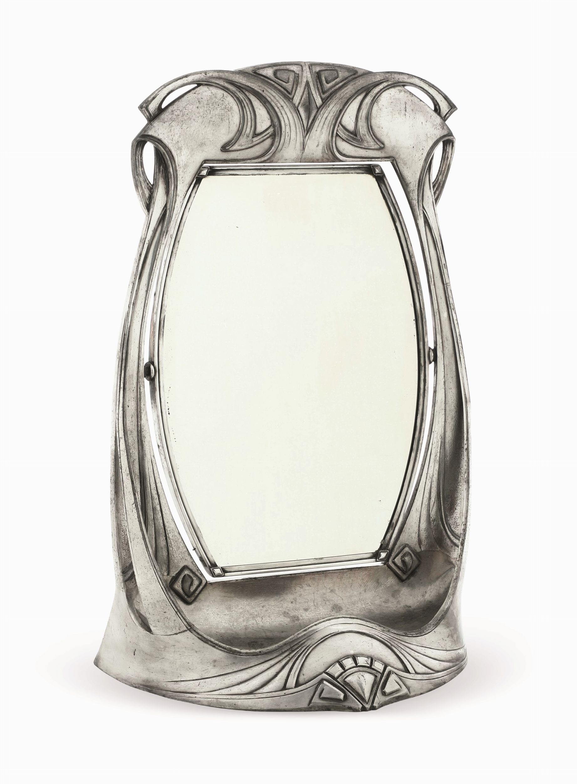 Specchiera da tavolo Liberty in metallo argentato. XX secolo