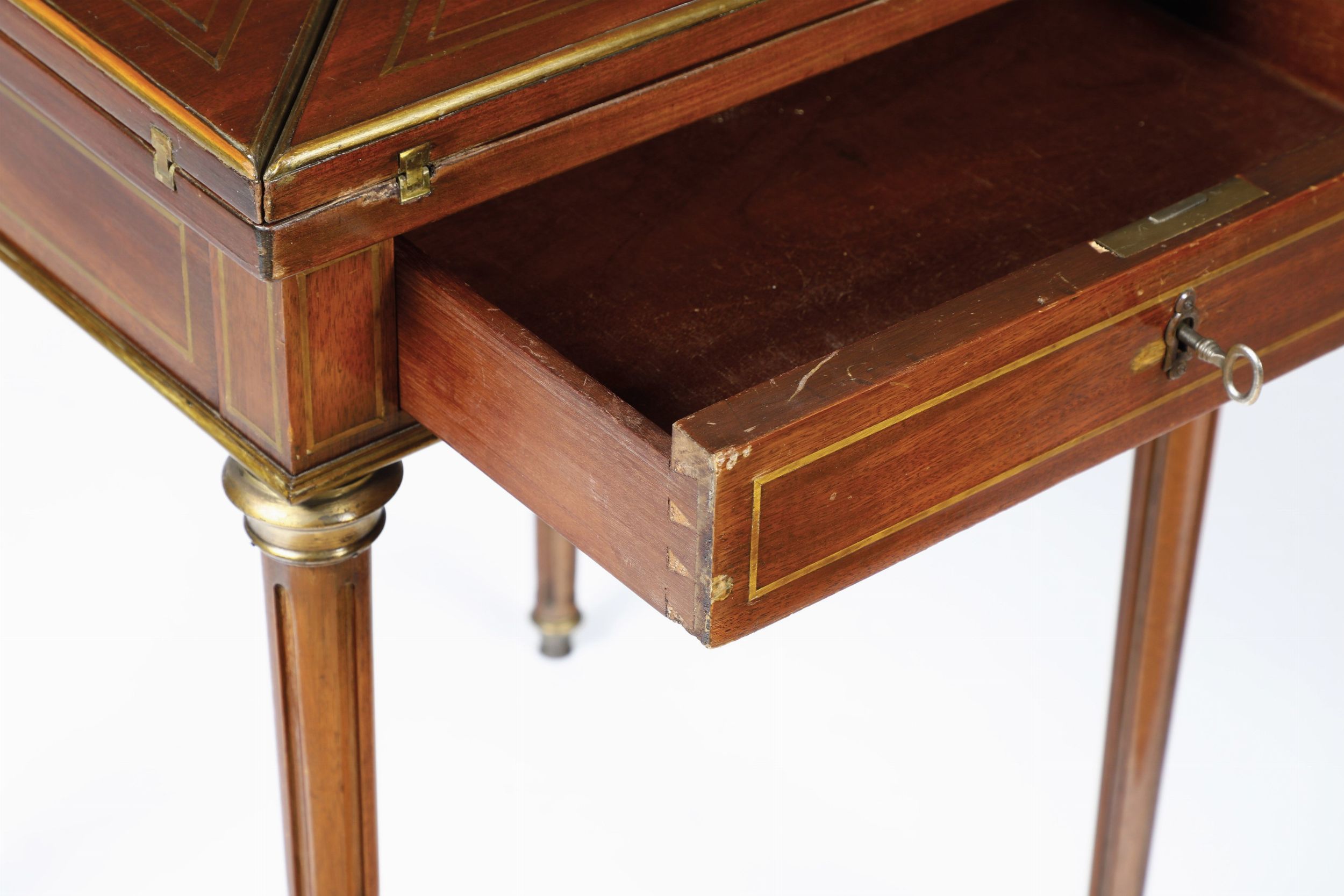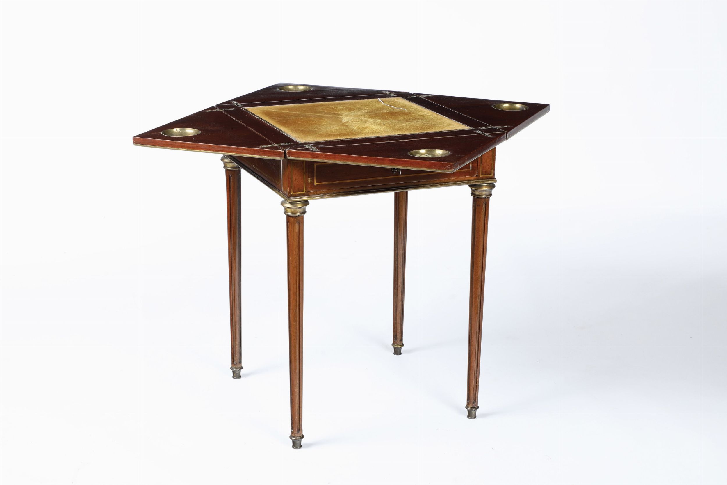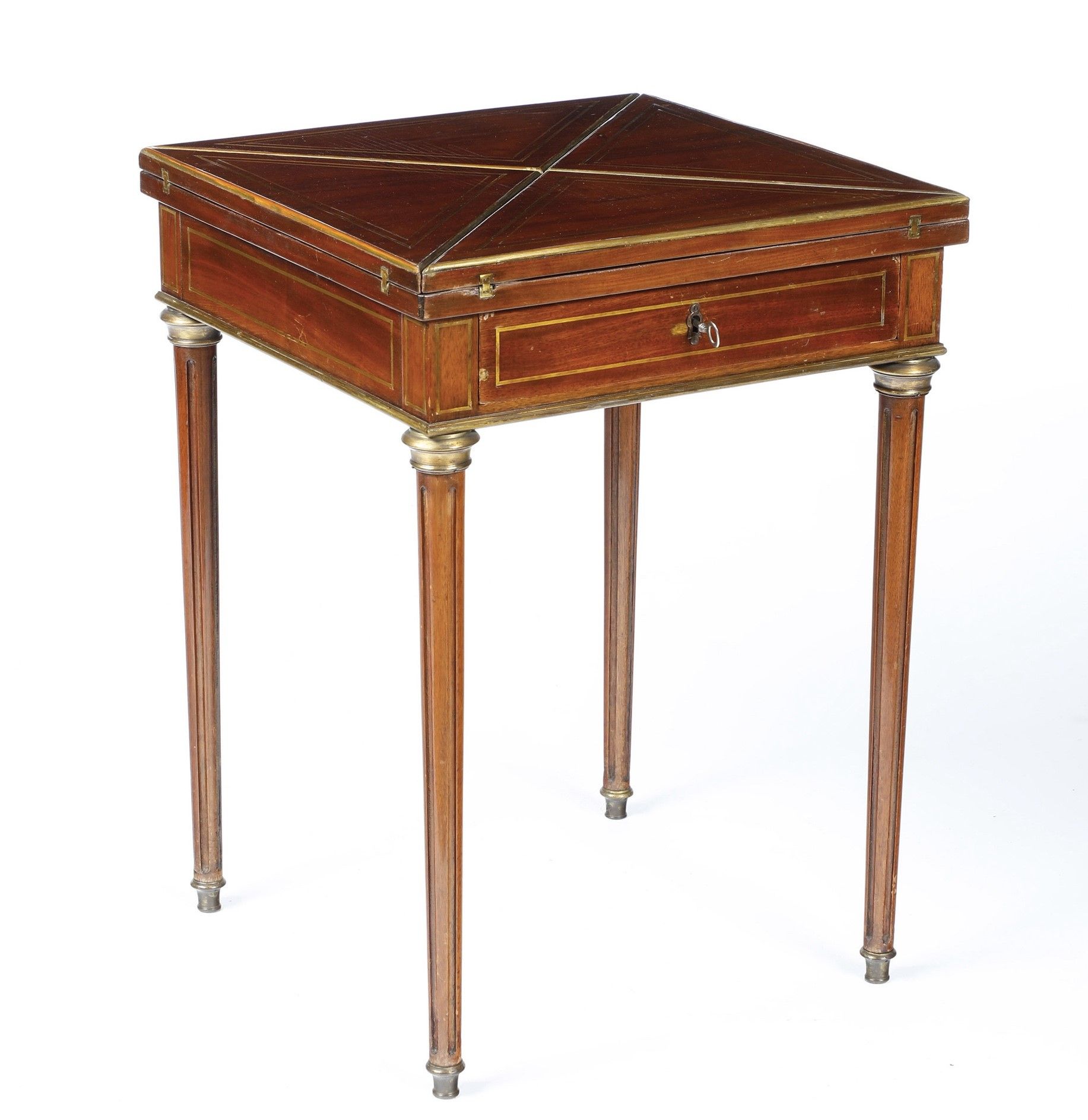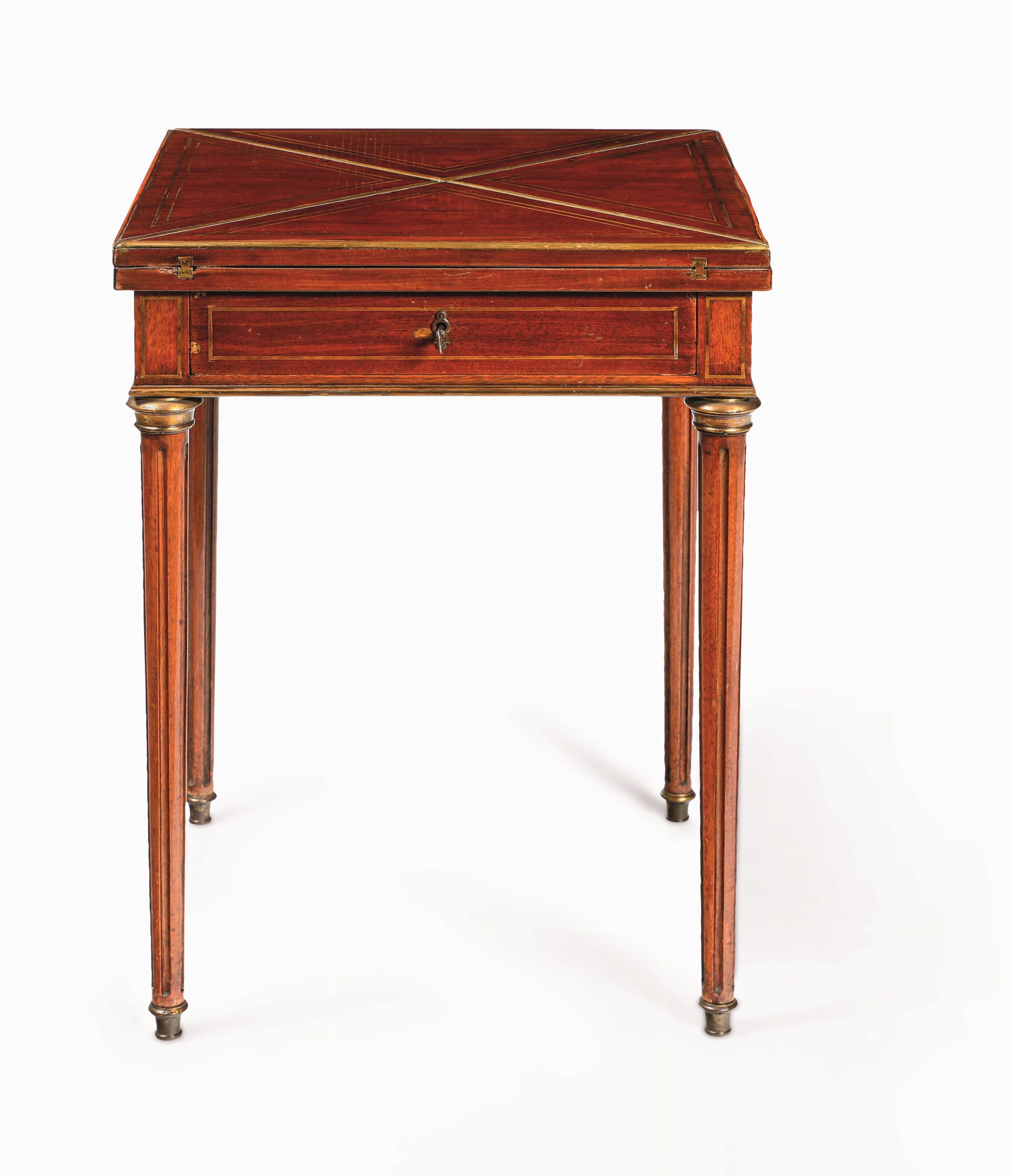 Tavolino da gioco lastronato e filettato in ottone. XIX secolo