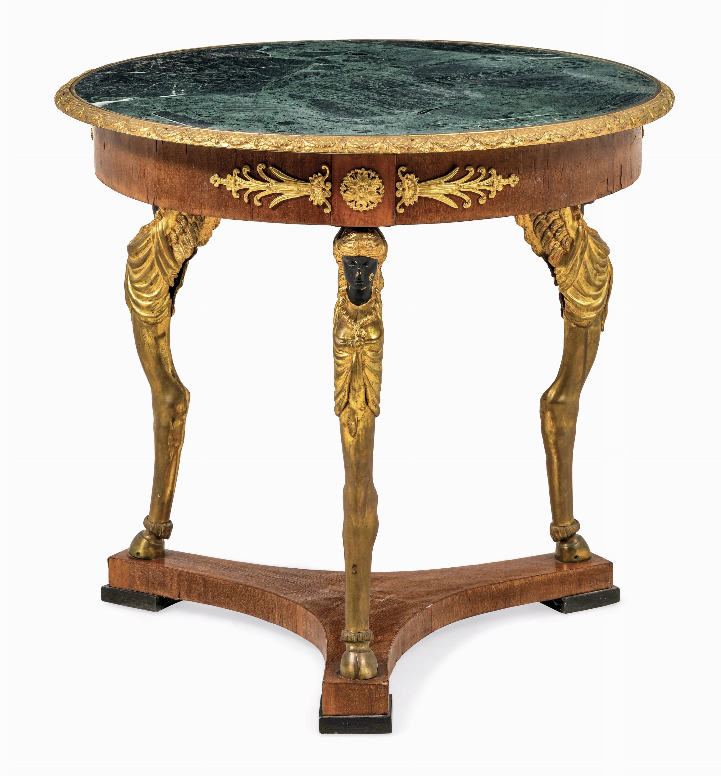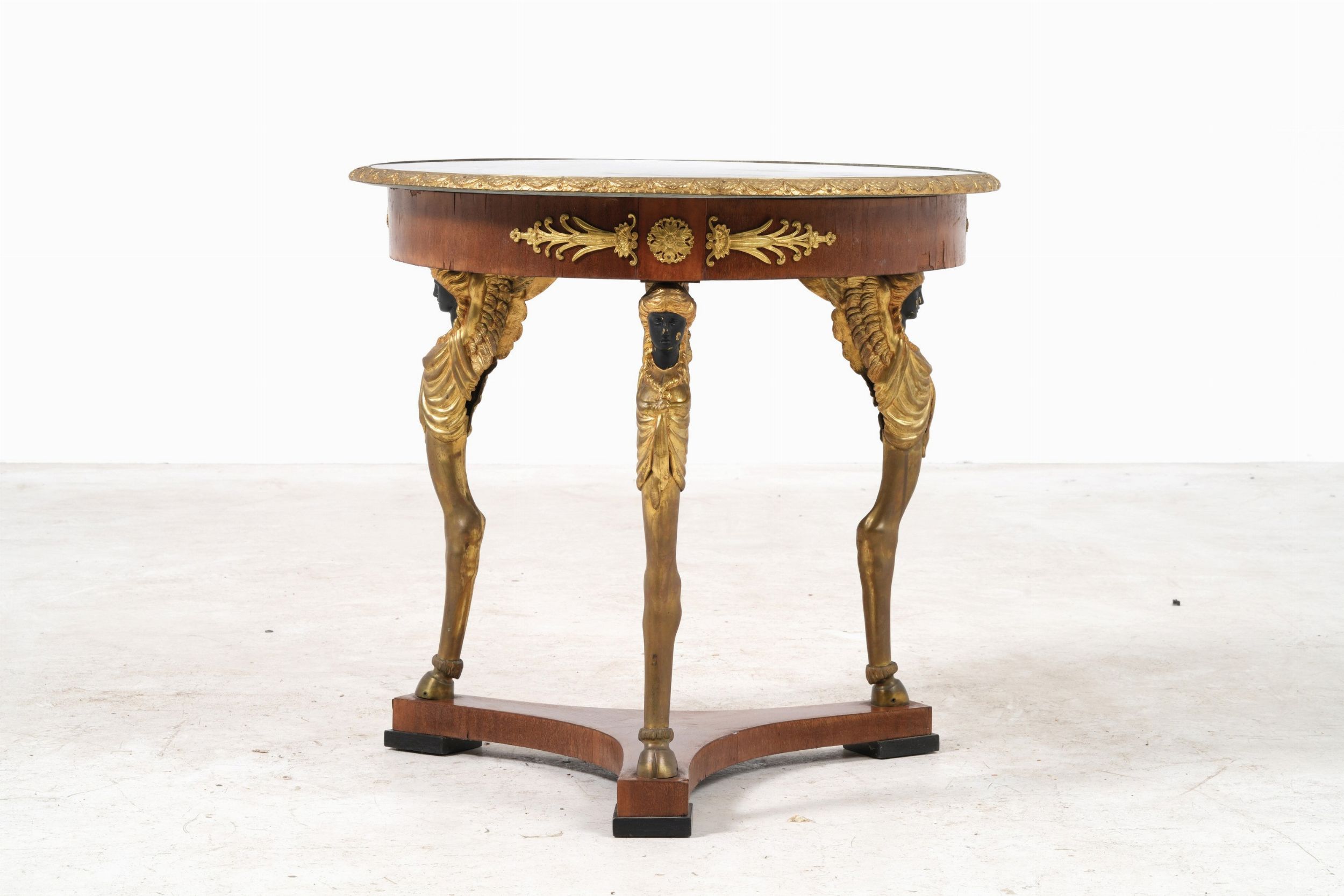 Tavolo Impero lastronato, intagliato e dorato. XIX secolo