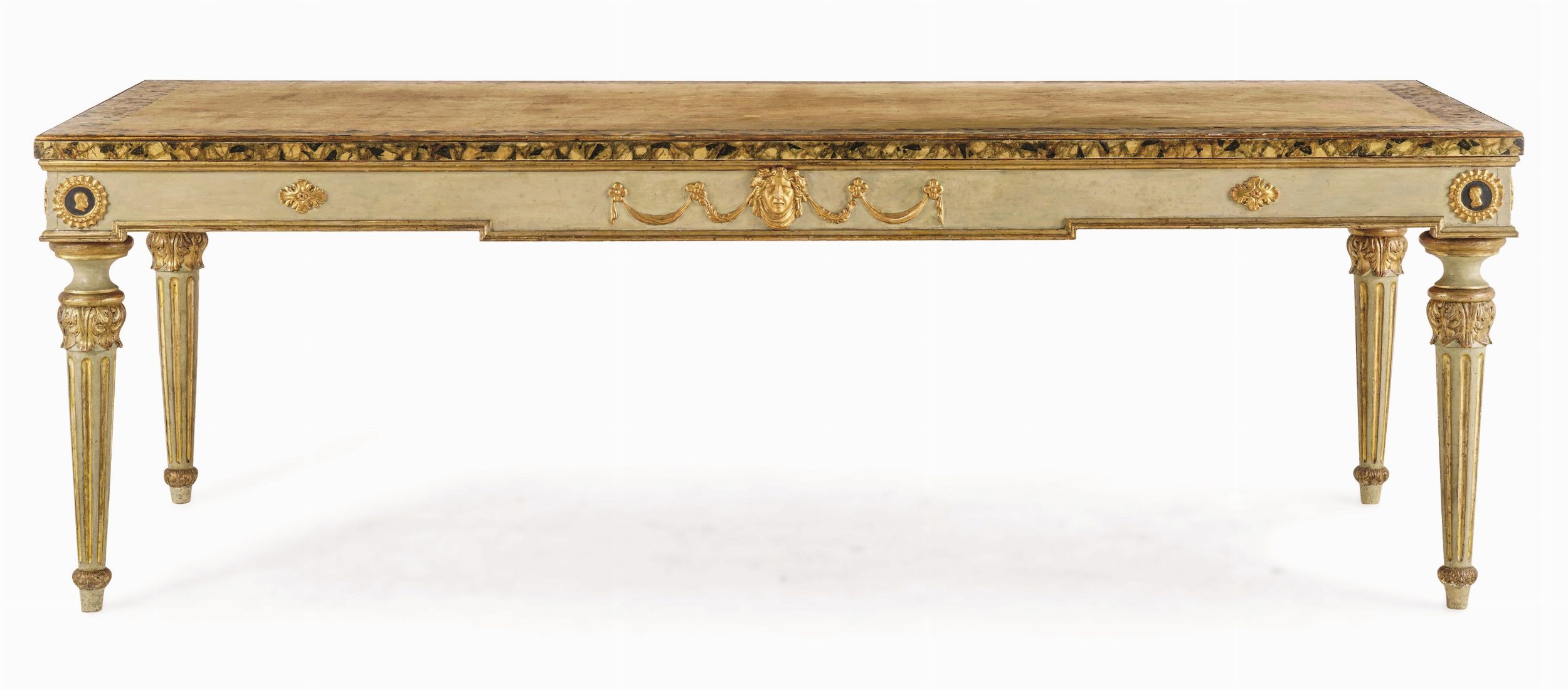 Tavolo in stile Luigi XVI dipinto e dorato. XX secolo