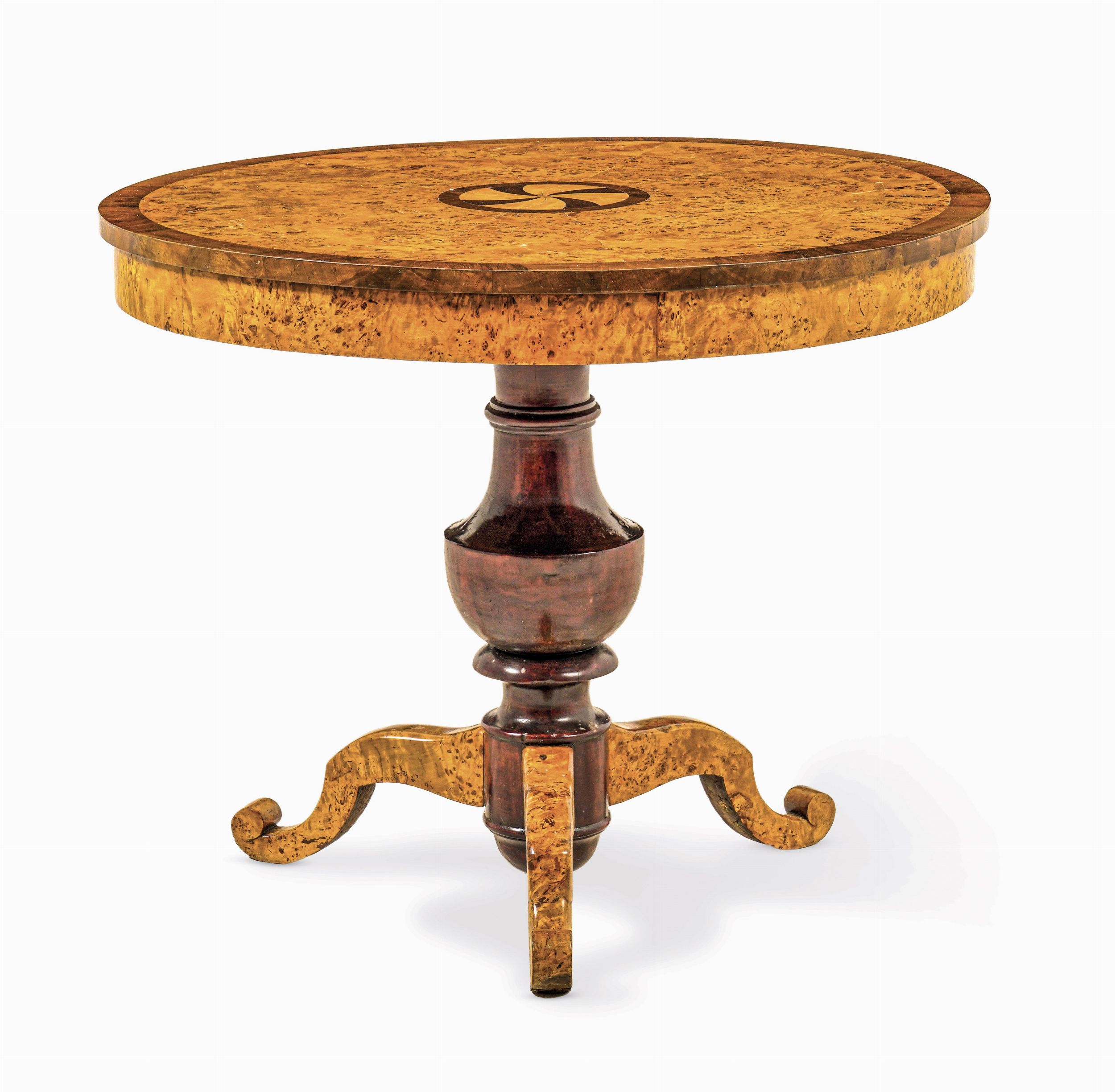 Tavolo lastronato in radica di tuja. XIX-XX secolo