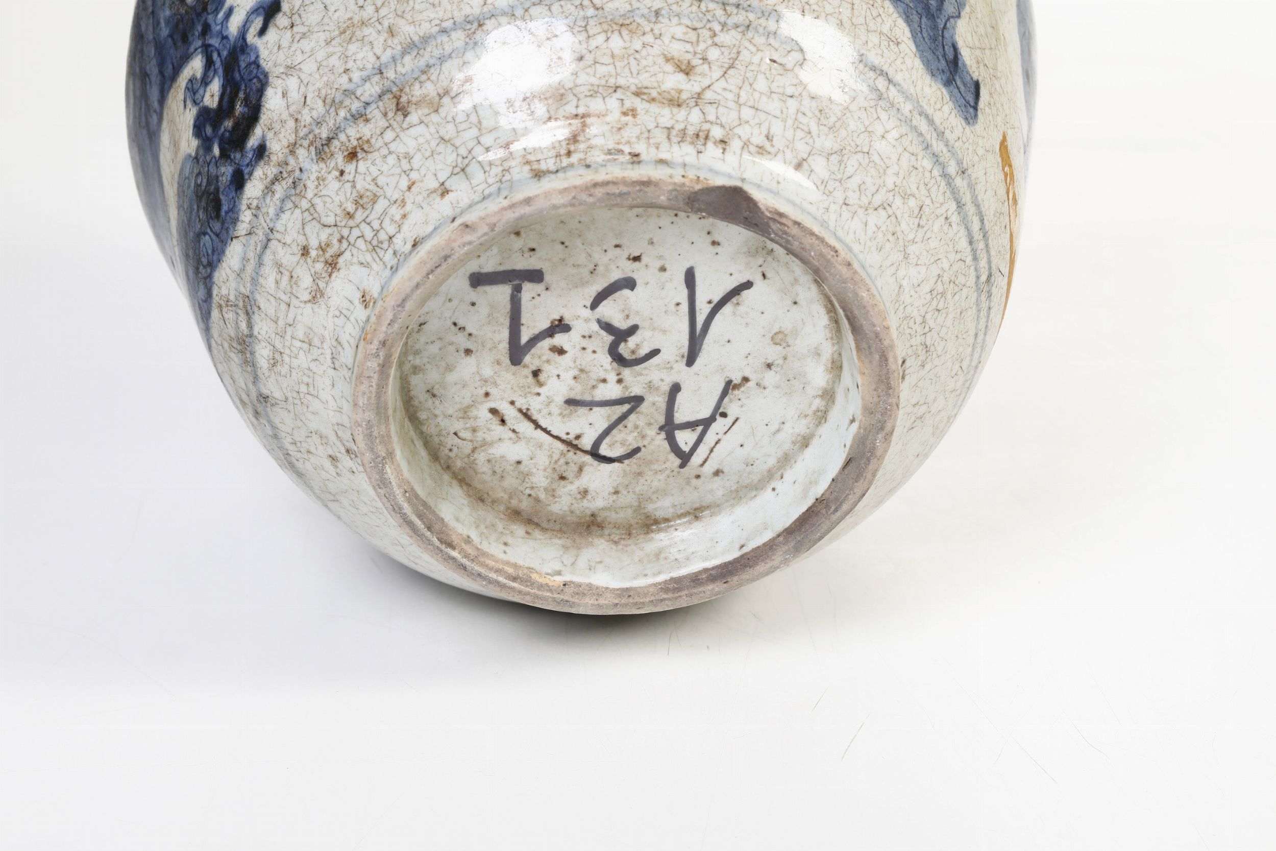 Versatoio in porcellana bianca e blu raffigurante drago, Cina, XIX secolo