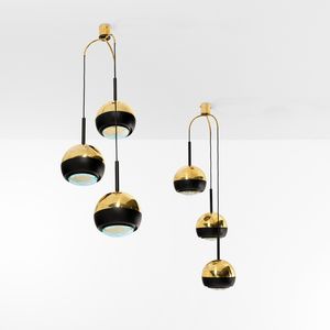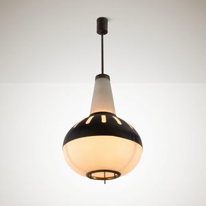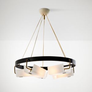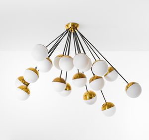 Cm 55X215 Struttura in metallo nichelato, diffusori in vetro opalino e base in marmo. Prod. Azucena, Italia, 1 [..]