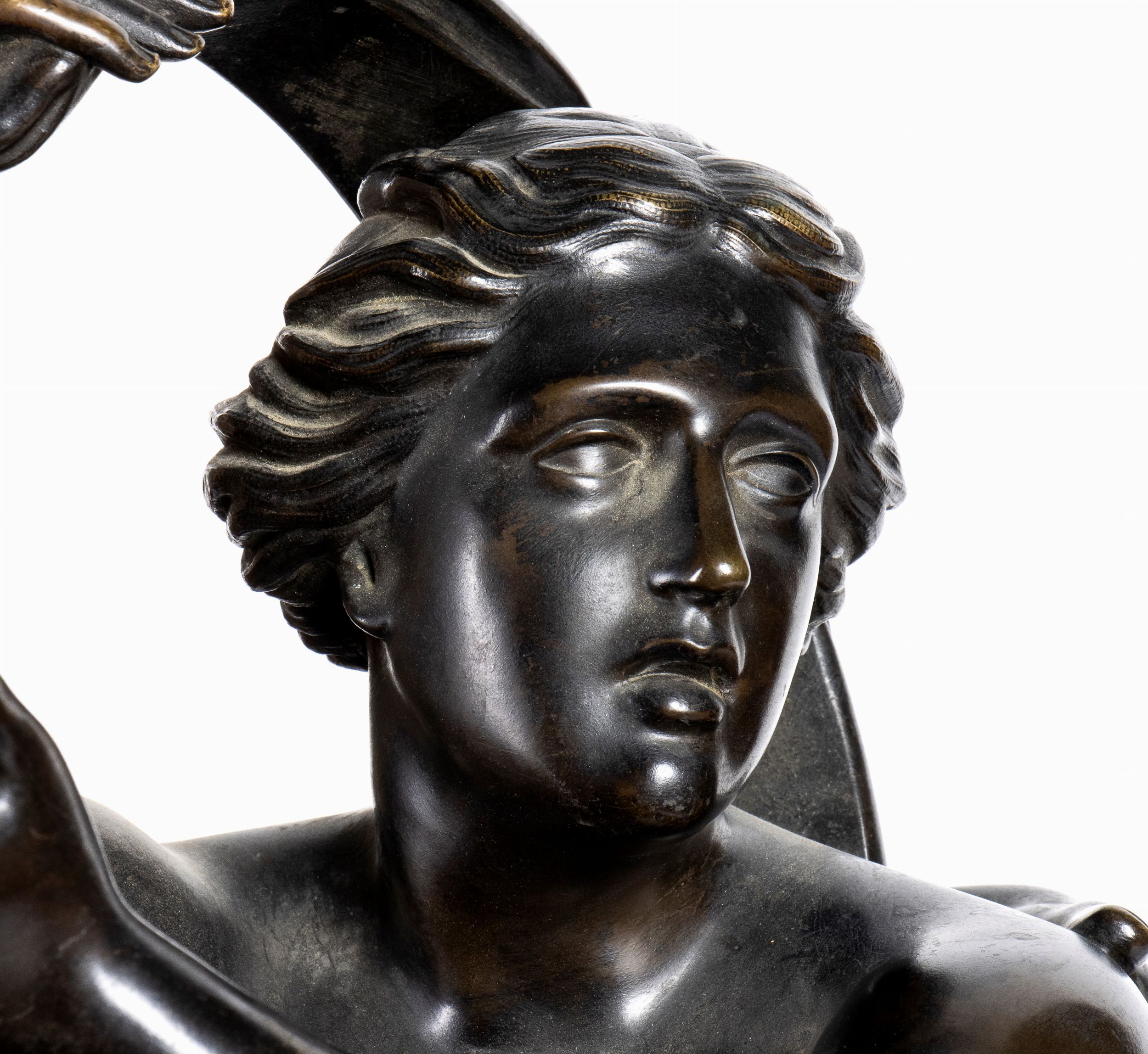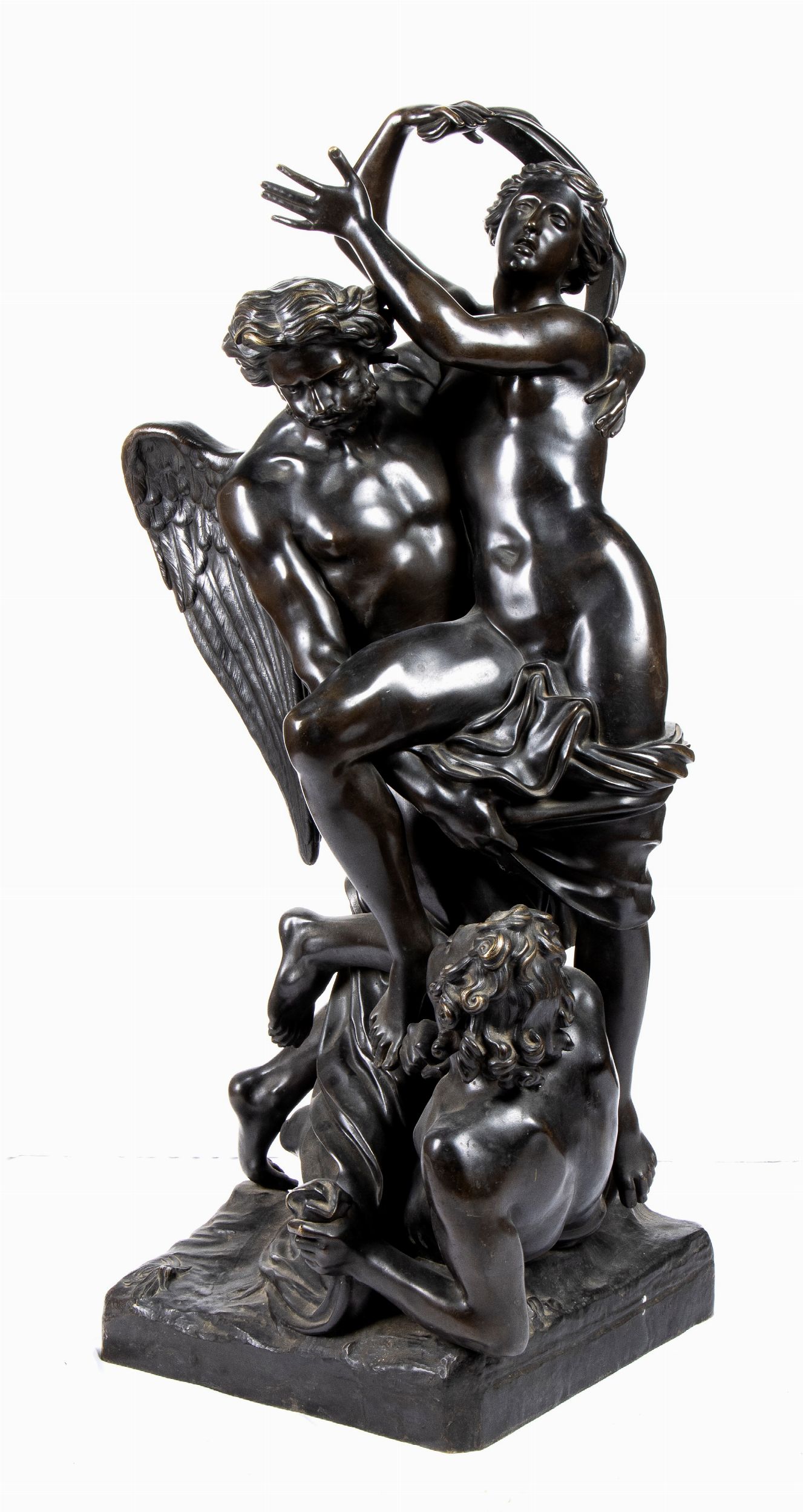 XVIII secolo Il bronzo, raffigurante Borea che rapisce Orizia , intreccia virtuosisticamente tre figure in una sorta di complessa spirale: un piccolo Zefiro sdraiato, il giovane ma potente Borea, caratterizzato dalle guance gonfie, suo antico attributo che rimanda alla sua identità di Vento del Nord, e la bella Orizia, figlia di Eretteo, re di Atene. Secondo la mitologia greca, Borea si innamorò di Orizia e, contro la sua volontà, la rapì per portarla in Tracia, dove infine regnarono come re e regina dei venti. Questo bronzo si basa sul modello preparatorio per una delle quattro sculture monumentali in marmo commissionate da Luigi XIV a Gaspard Marsy e François Girardon (Troyes, 1628 – Parigi, 1715) per decorare gli angoli del giardino progettato da Charles Le Brun (Parigi, 1619 – Parigi, 1690) a Versailles, il Parterre d'Eau , mai completato. Ciascun gruppo scultoreo, composto da tre figure, simboleggiava uno dei quattro elementi: terra, aria, fuoco e acqua. Borea, come rappresentazione del vento del Nord, era il simbolo dell'aria. Poiché il giardino non fu mai realizzato, Luigi XIV ordinò delle riduzioni in bronzo delle opere di Marsy e di Girardon, con lo scopo di formare una coppia per decorare il Salone Ovale nel Palazzo di Versailles. Due copie di entrambe le sculture, realizzati in due dimensioni diverse sono oggi conservate al Getty Center Museum di Los Angeles. Questo bronzo è un bell’esempio delle fusioni successive, piuttosto rare, di questo importante gruppo scultoreo.